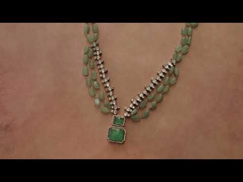 Indulge in the luxurious world of high-end fashion with our Kashira mint polki necklace. Drawing inspiration from royalty, this necklace adds a touch of Victorian charm with mint green fluorite stones. The intricate polki work and layered design make it a standout piece that will surely turn heads. Elevate your style with this exclusive and sophisticated necklace.