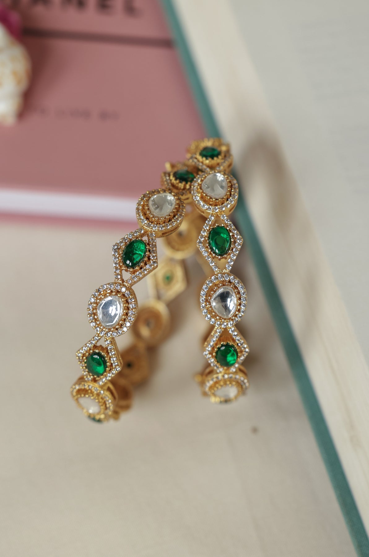 Nerah Green Polki Bangles - Set of 2