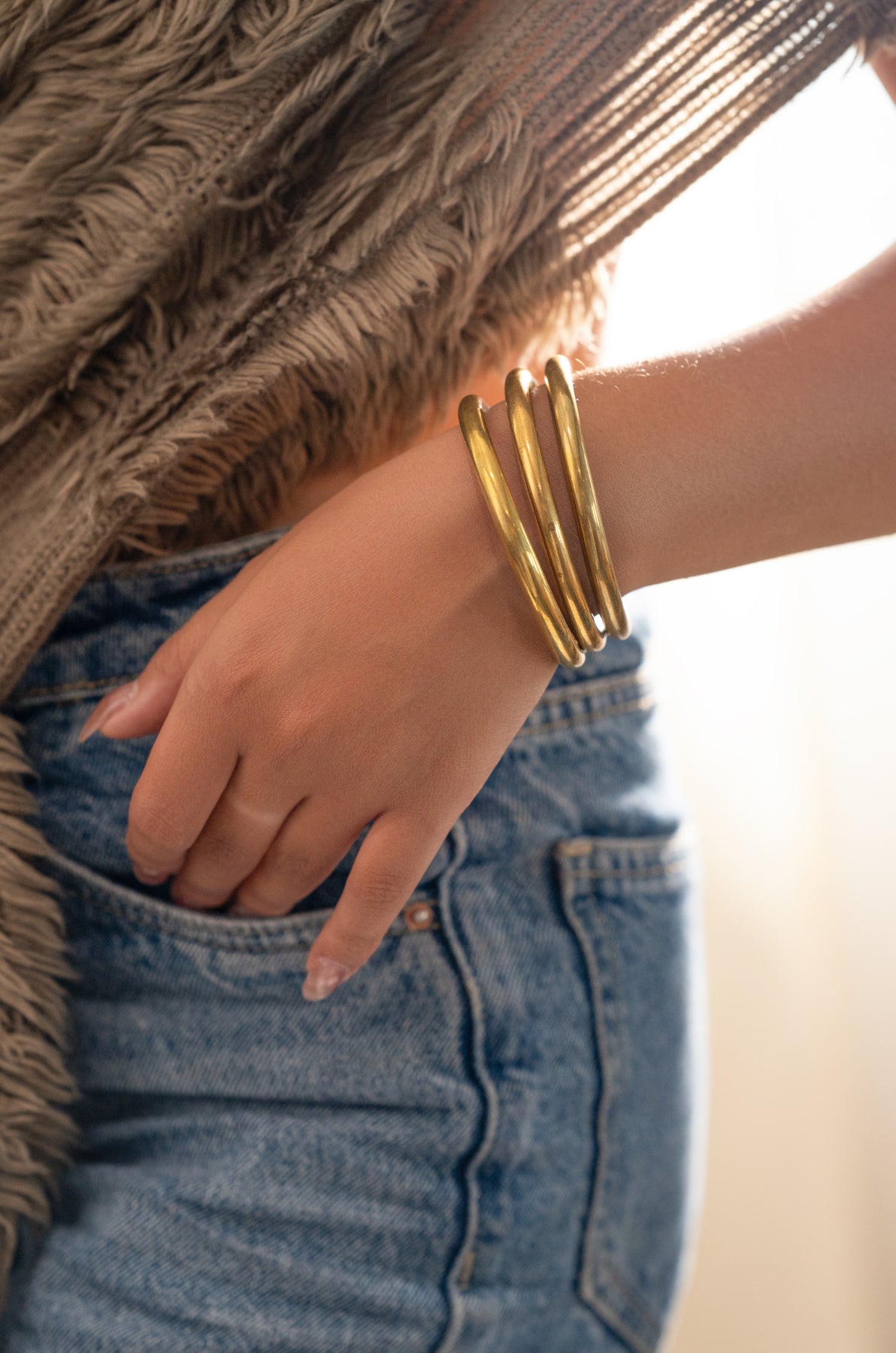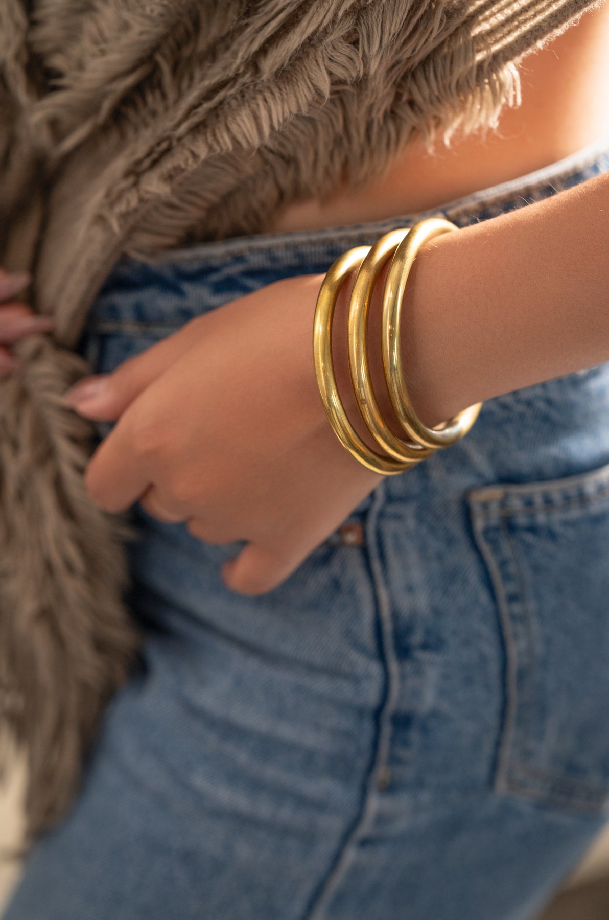Add a dash of charm to your accessory game with the Nia bangles, three trendy bangles that mix classic grace with a fresh, modern twist. Whether you’re dressing up or keeping it casual, these bangles bring a playful sparkle and comfy vibe to every outfit, making your style effortlessly chic and fun.