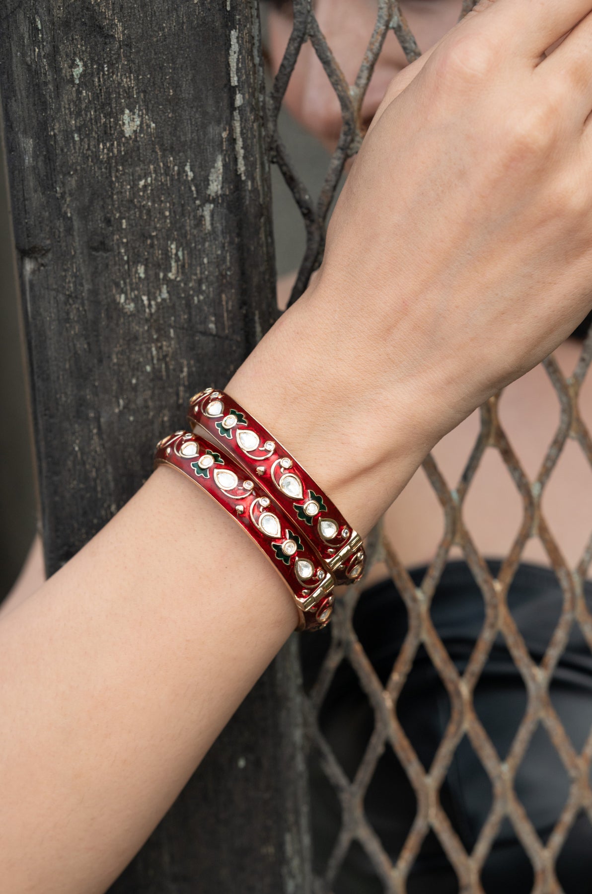 Sabeeta Red Meenakari Polki Bangles - Set of 2