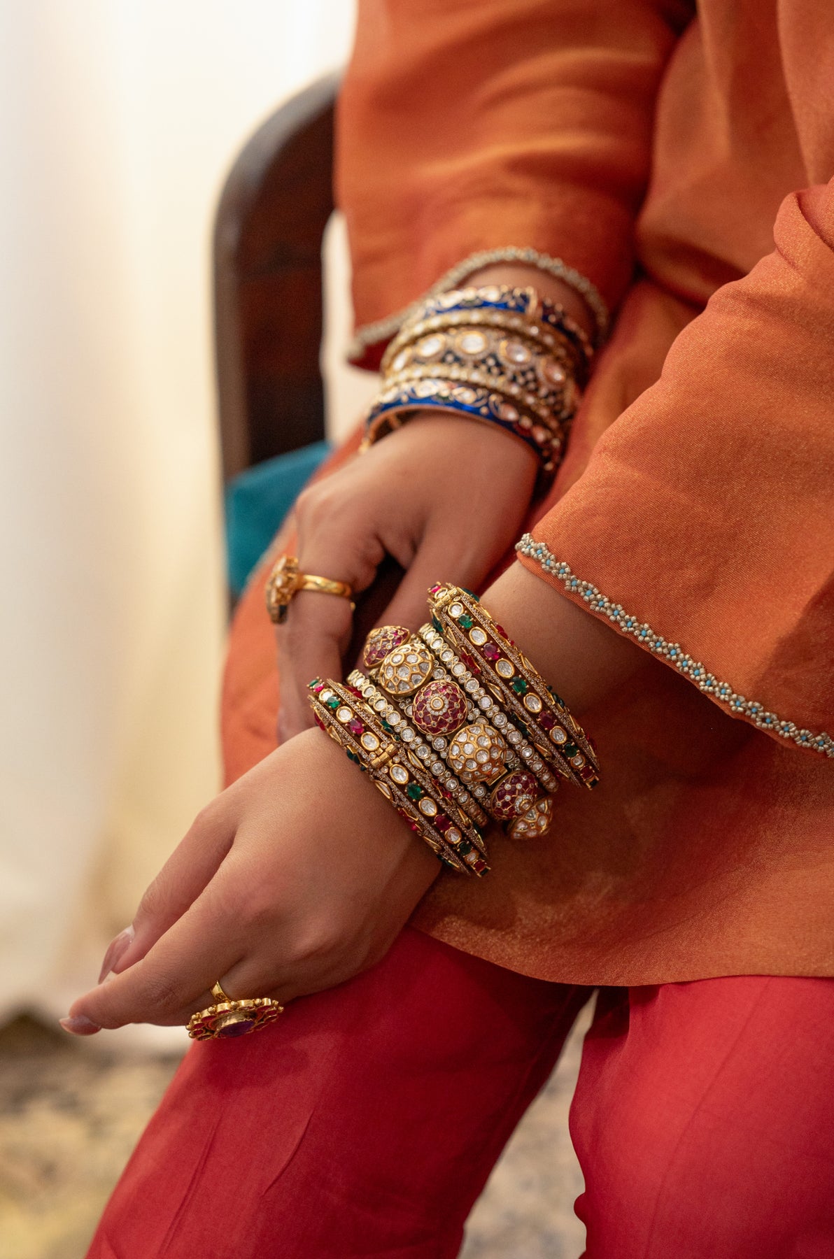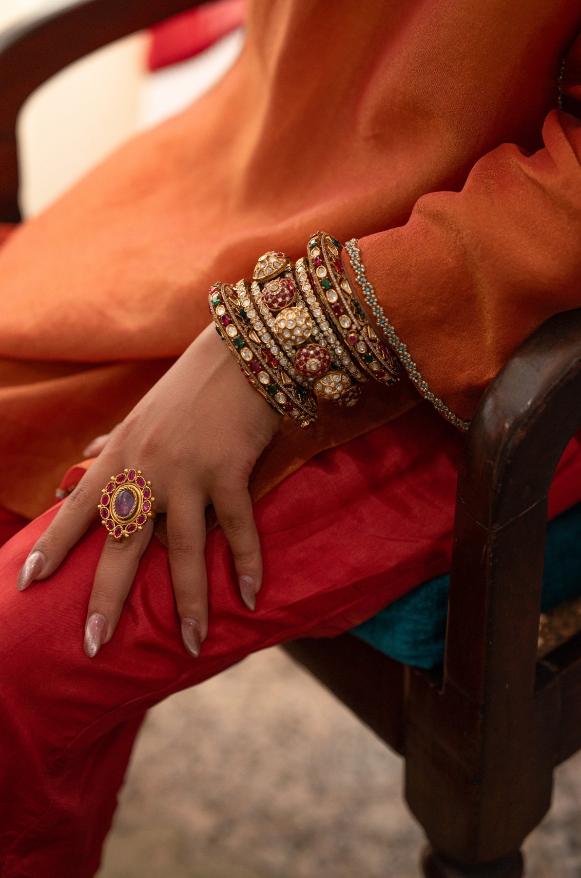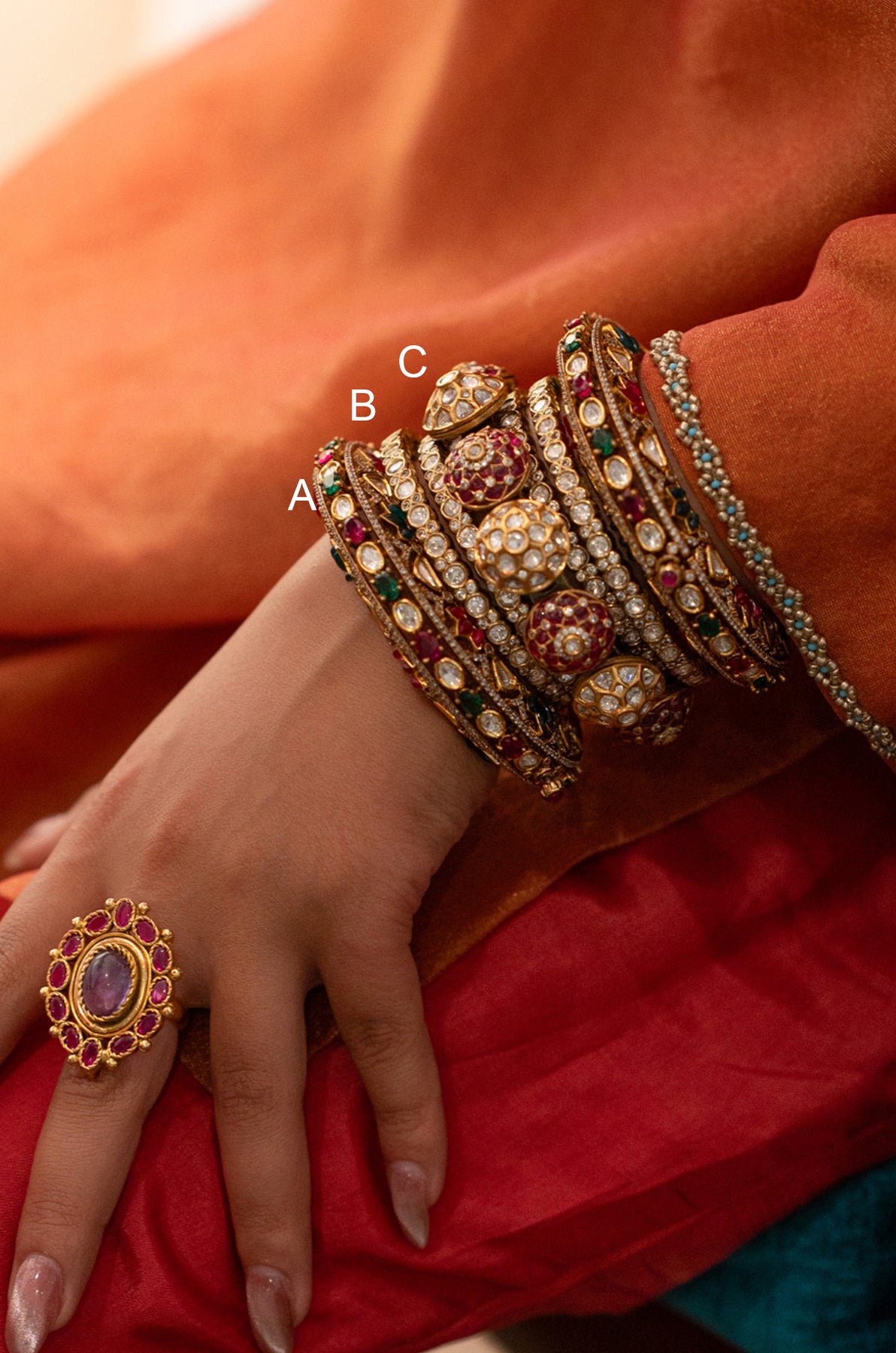 Discover the timeless elegance and charm of traditional ceremonies with our finely crafted polki bangles. Expertly designed and richly detailed, these bangles make a perfect accessory for weddings, adding a sophisticated touch to every occasion.