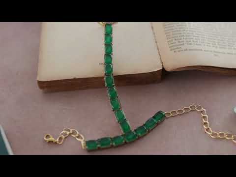 Experience opulent elegance with our Inakshi green hathphool bracelet. Embellished with contemporary green stones and a statement look fit for a bride, this bracelet adds a unique touch to the traditional hathphool concept. Exuding a sophisticated yet modern vibe, it is the ideal accessory for any event. Revel in the luxurious beauty and exclusivity of this exceptional bracelet.