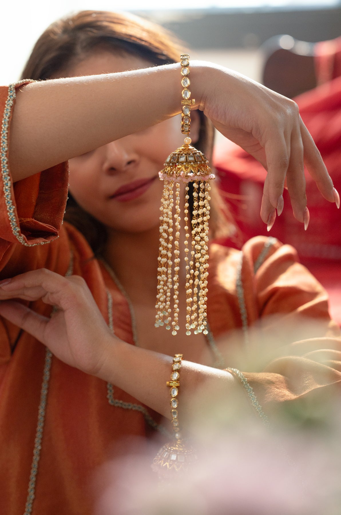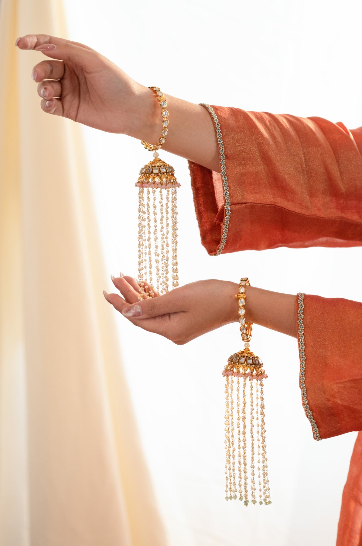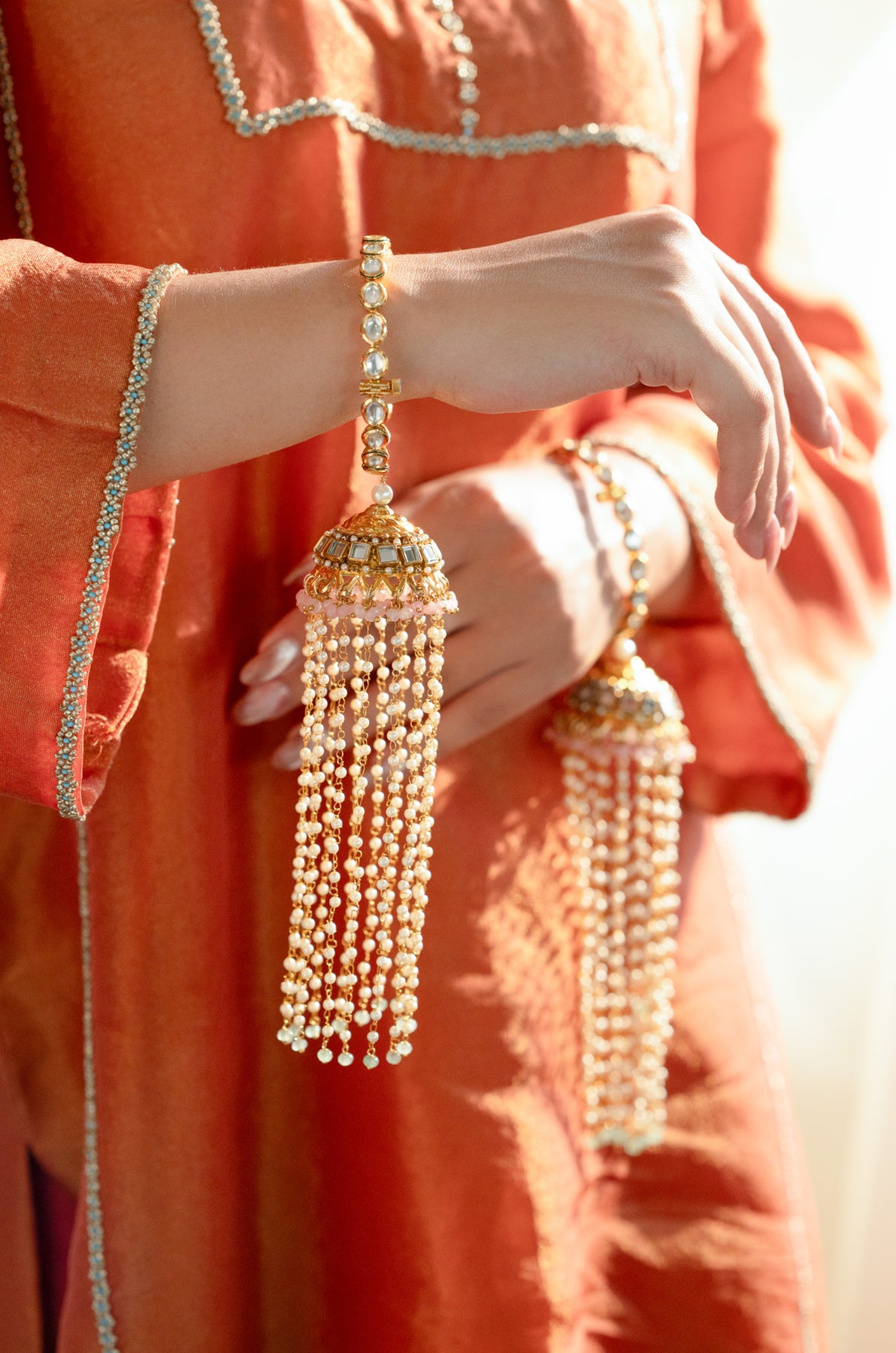 Celebrate love and tradition with the Mahika bangle set, featuring two vibrant pink onyx trinkets that add a playful twist to classic wedding jewelry. Perfect for brides who want to charm with a touch of color and timeless elegance on their special day.
