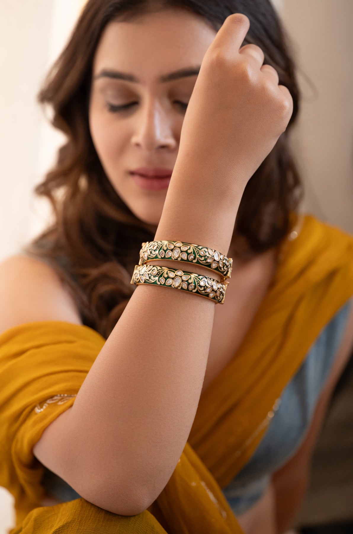 Sabeeta Green Meenakari Polki Bangles - Set of 2