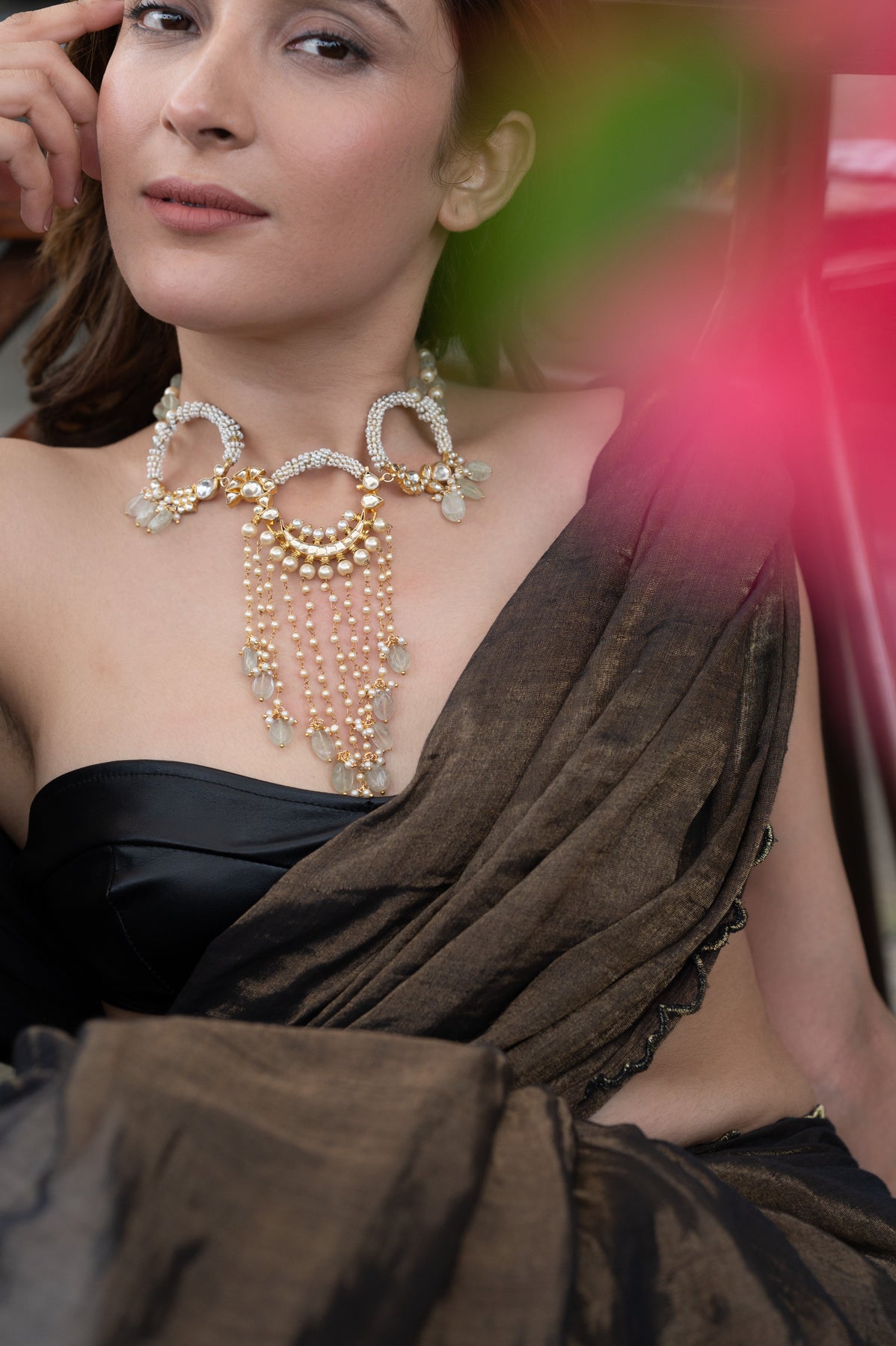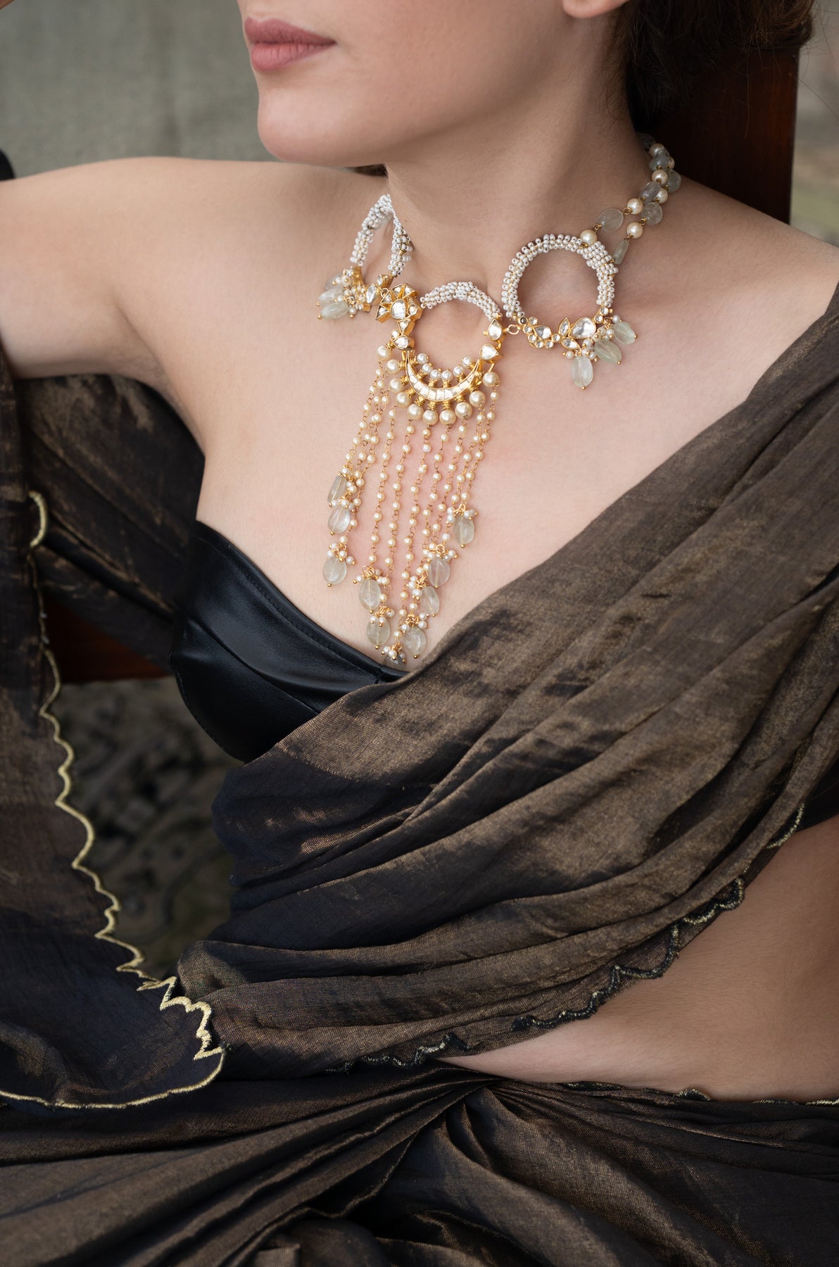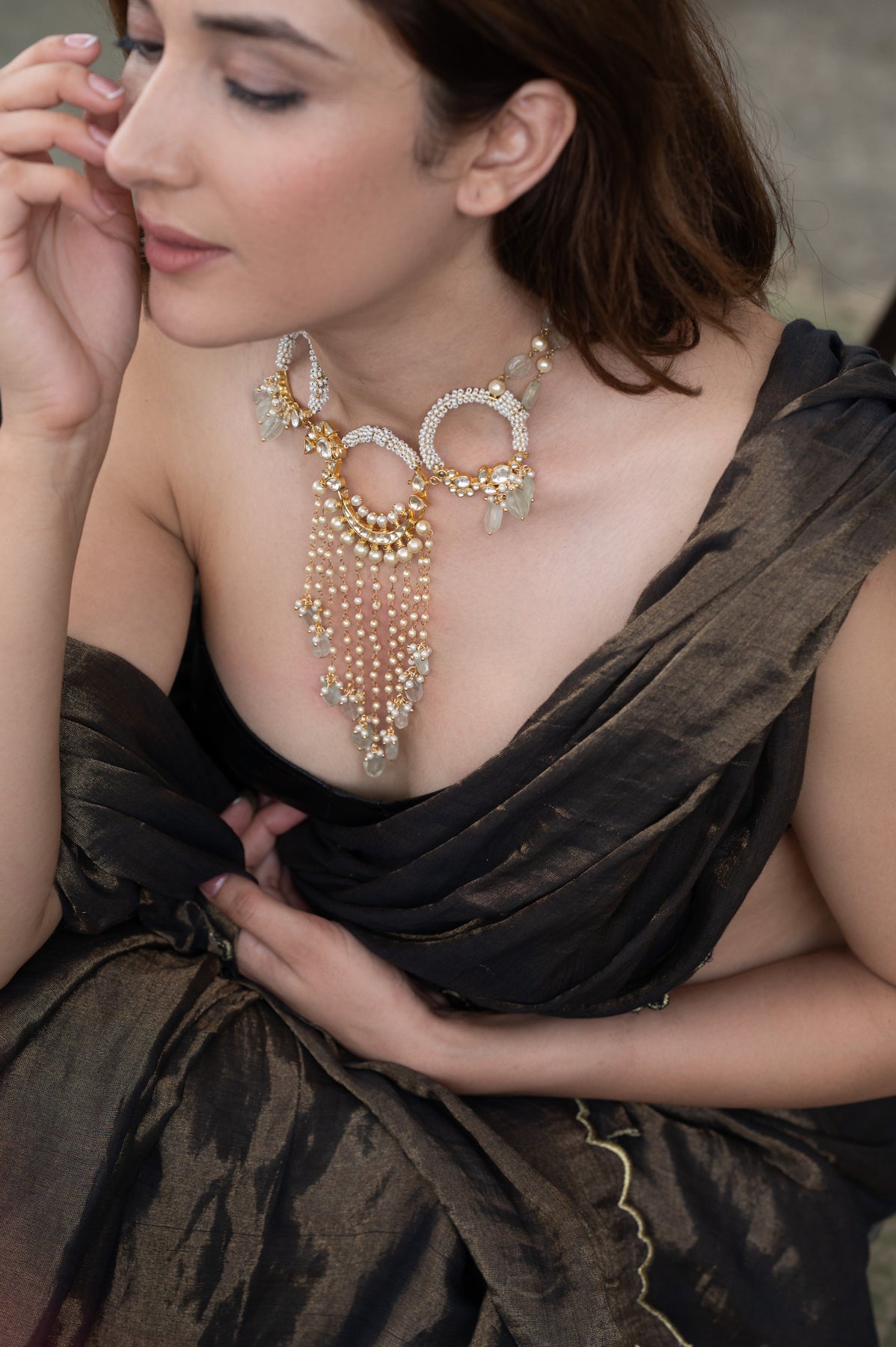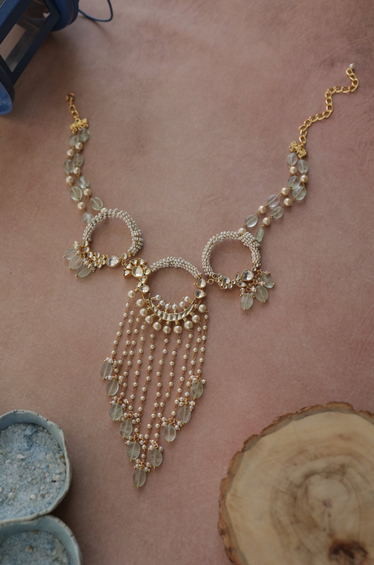 Indulge in luxury with our Bertha mint kundan choker necklace. The delicate pearls and traditional kundan design exude elegance and sophistication, perfect for any occasion. Add a touch of happiness to your ensemble with the mint stones and delicate pearls adorning this exquisite piece. Elevate your style with this timeless choker.