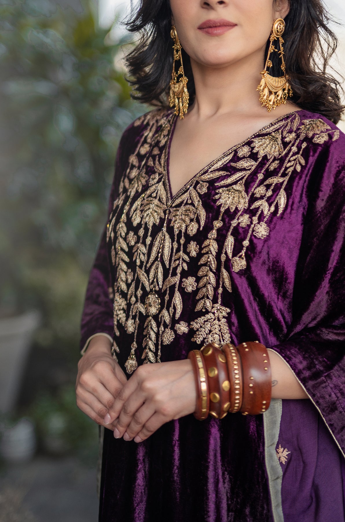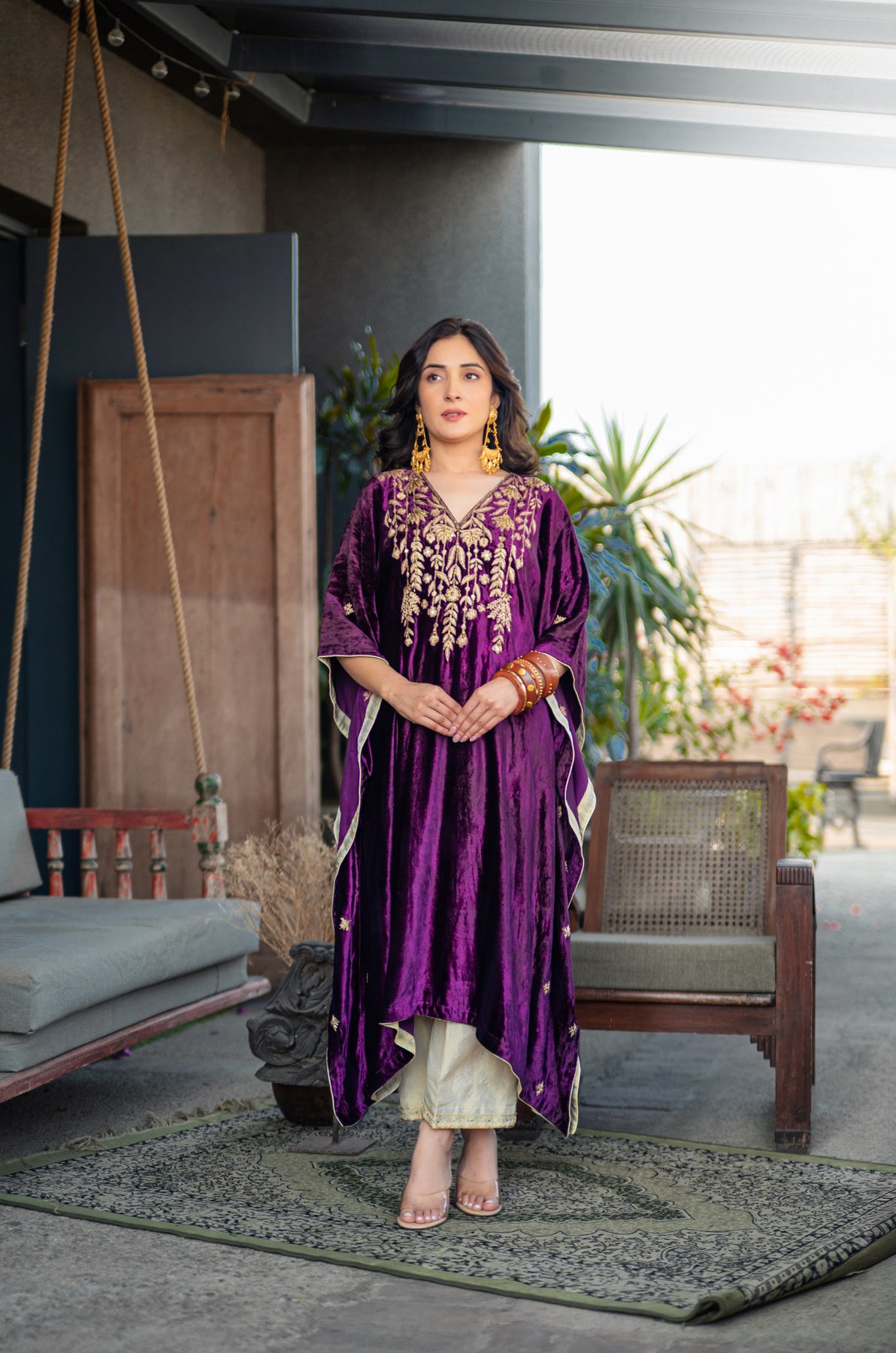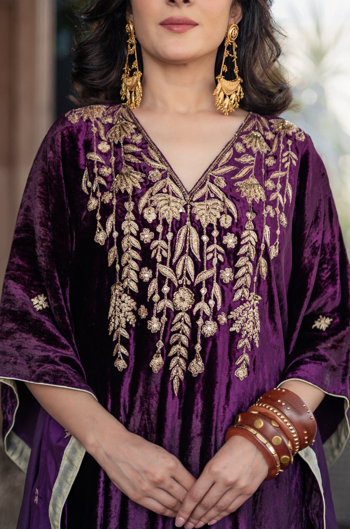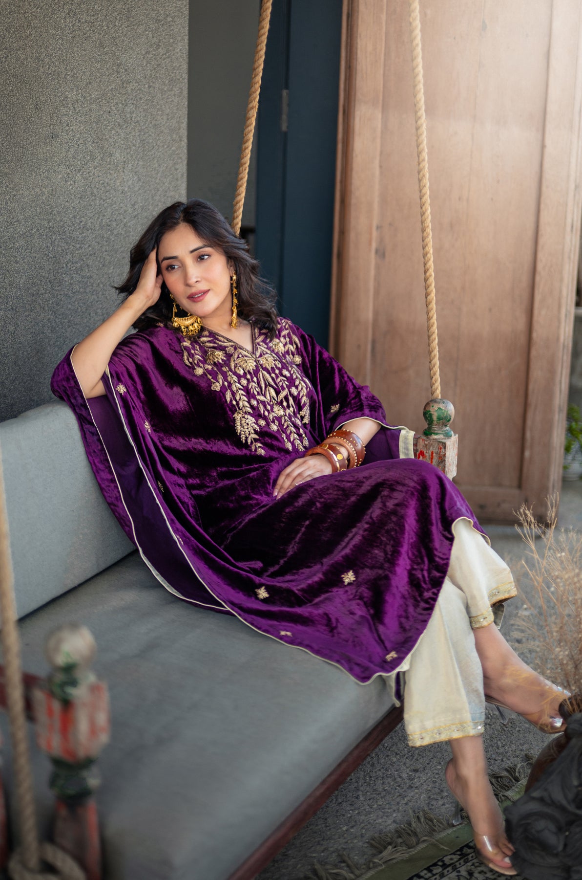 Chinaar Bagh Kashmiri Velvet Kaftan - Purple