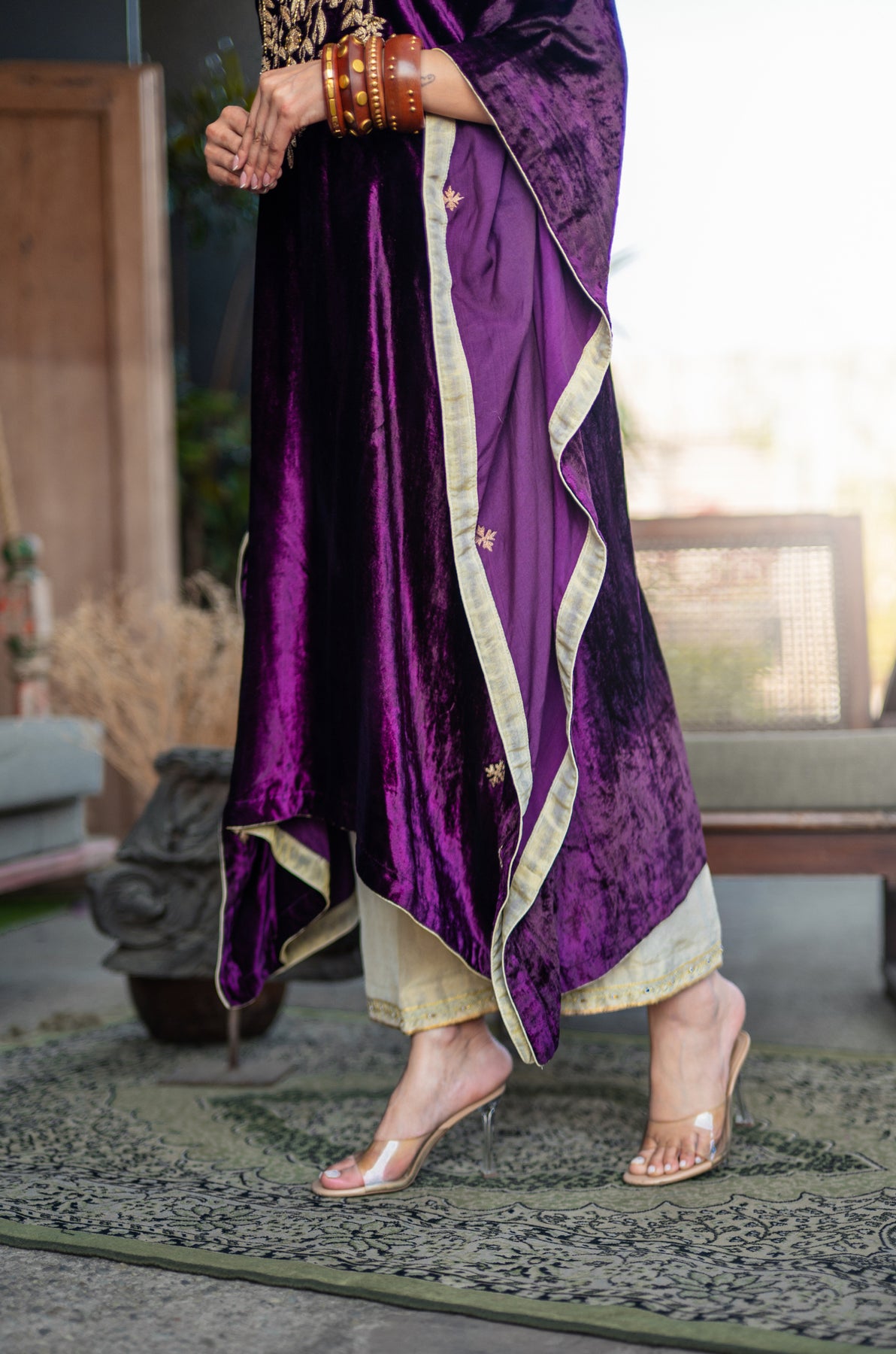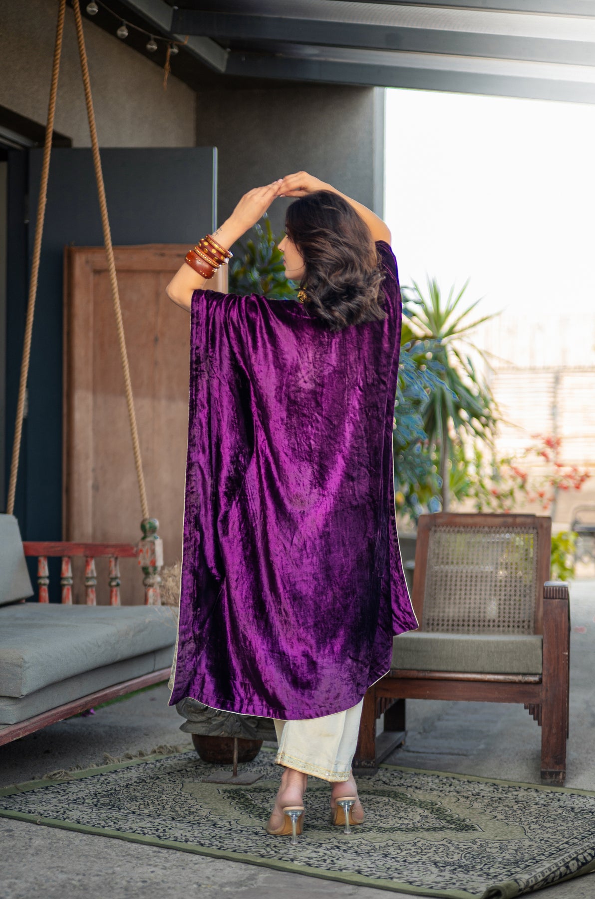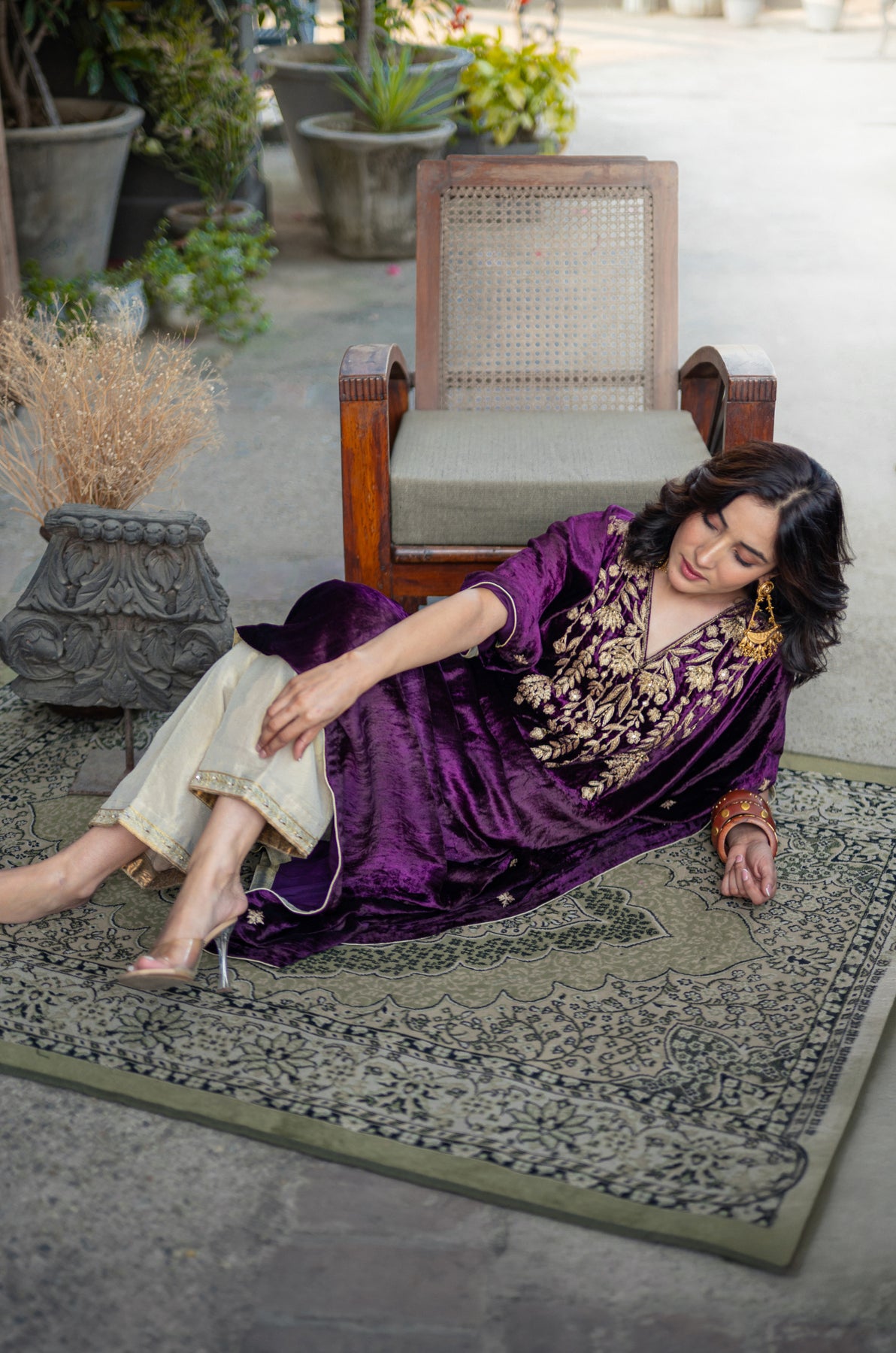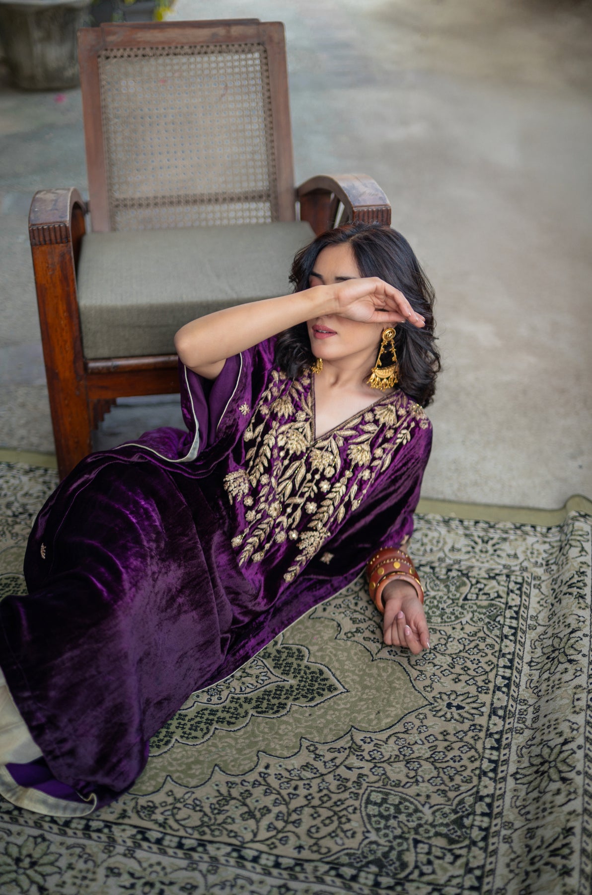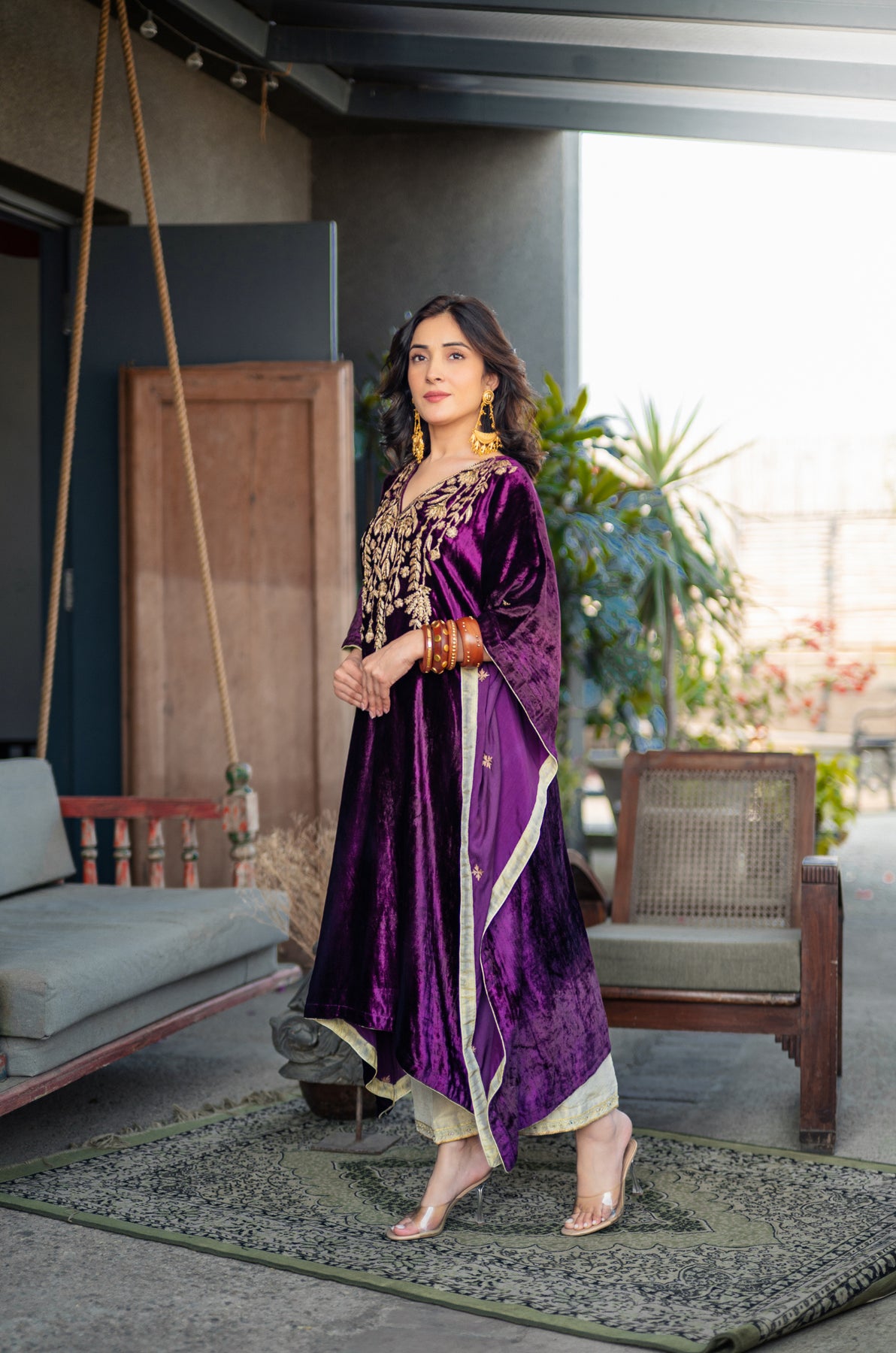 Chinaar Bagh Kashmiri Velvet Kaftan - Purple