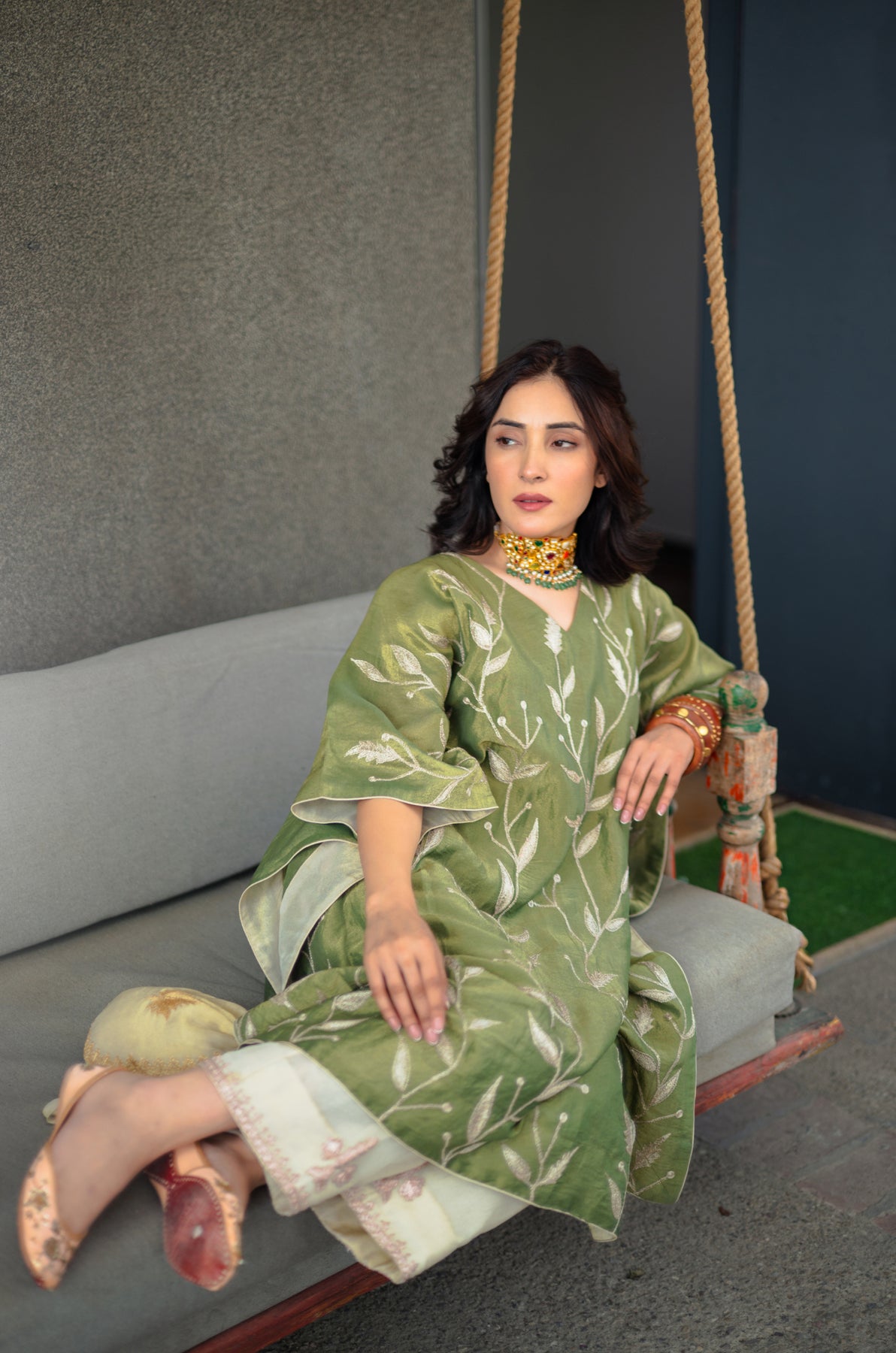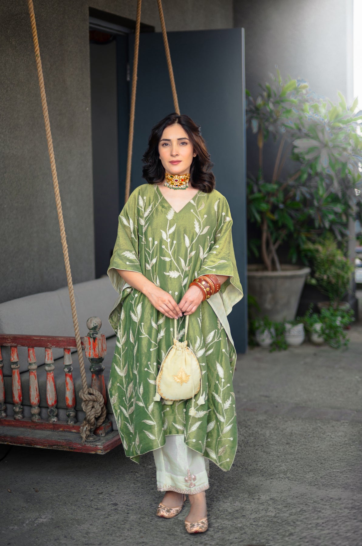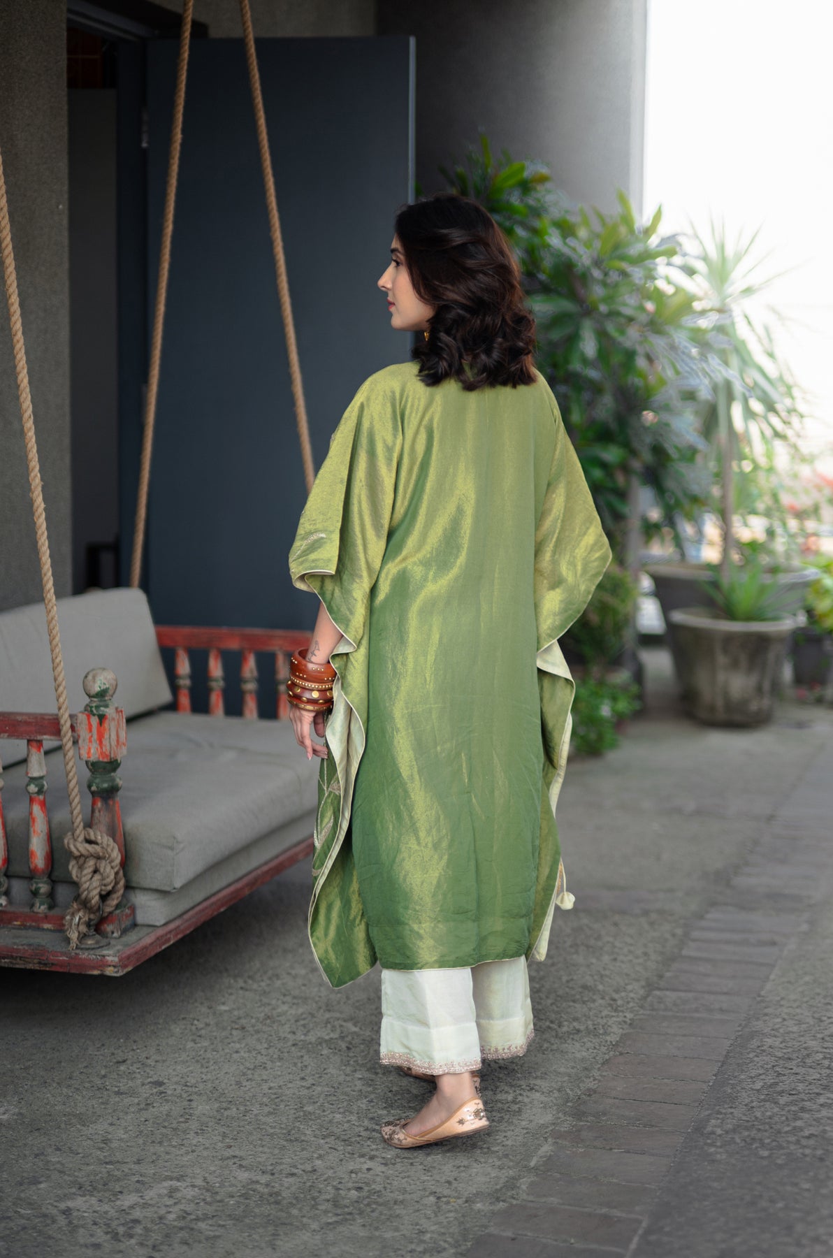 Harvan Kashmiri Tissue Kaftan - Green