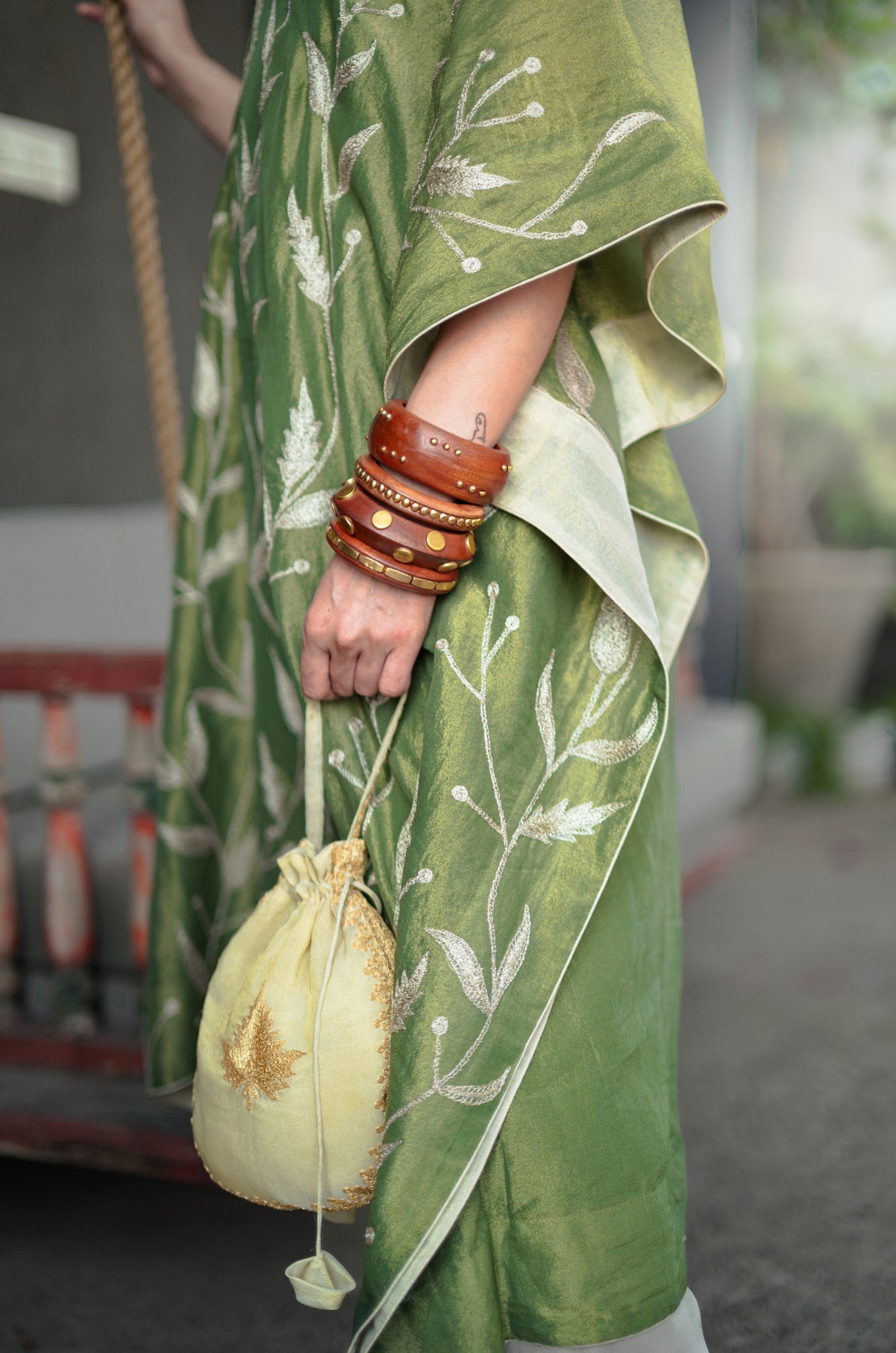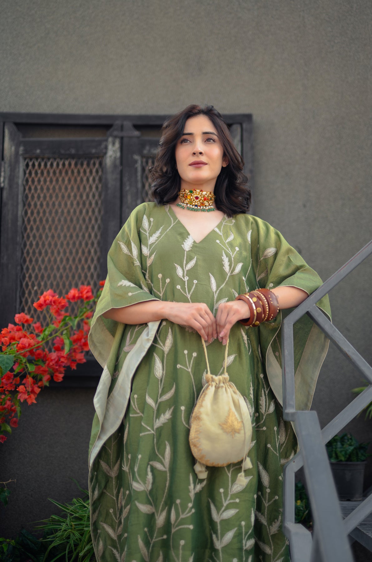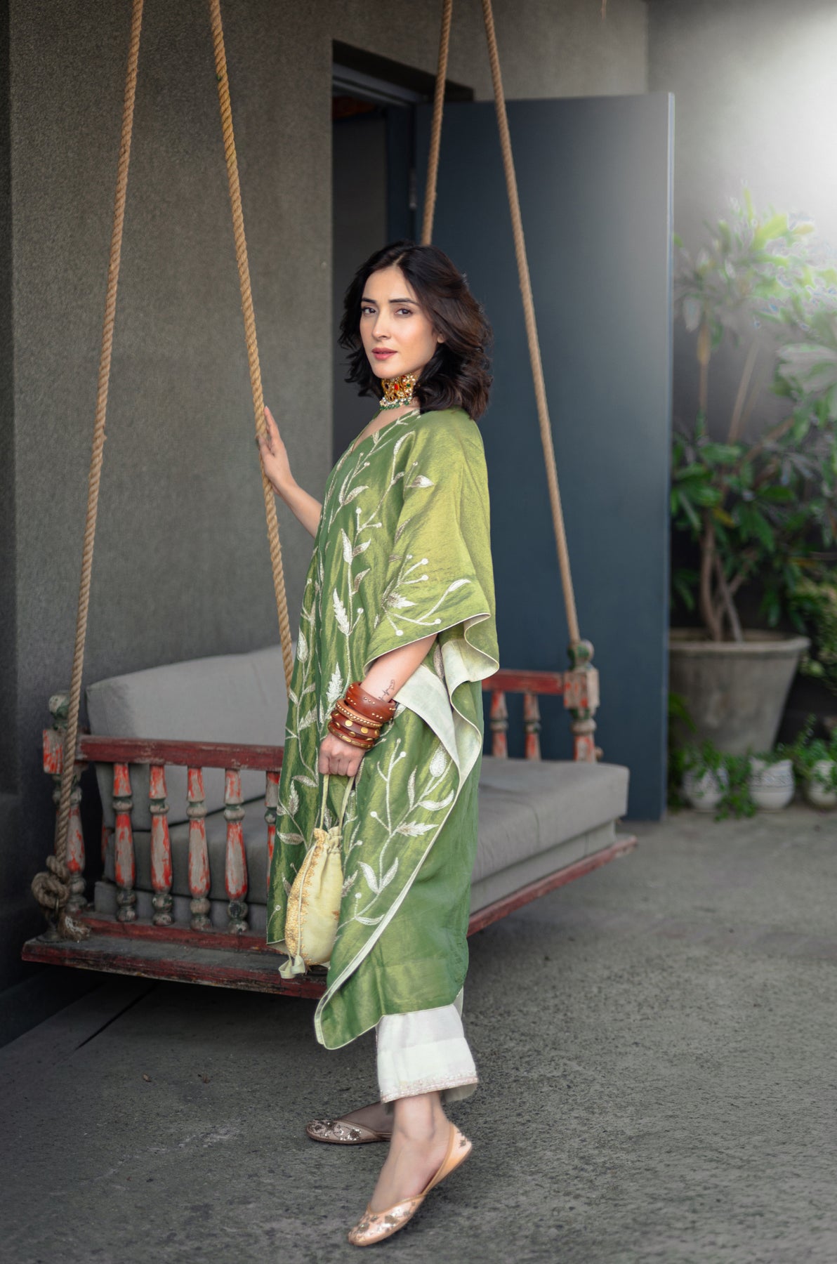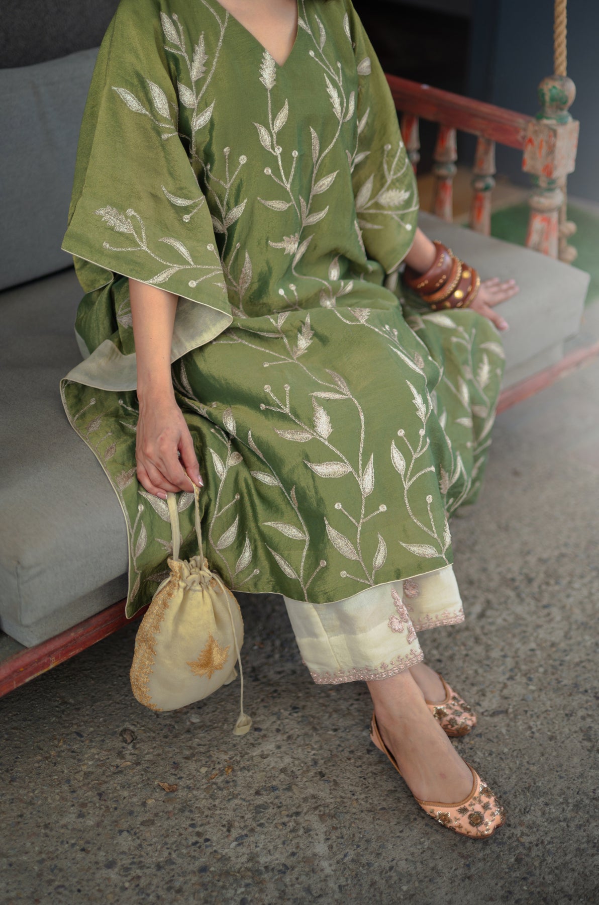 Harvan Kashmiri Tissue Kaftan - Green