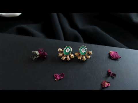 Experience the stunning combination of jade stone and kundan with Yemel studs. Expertly crafted with intricate details, these studs exude timeless elegance and will captivate anyone who sees them. Perfect for both formal occasions and everyday wear, this ring is a must-have piece for your collection.