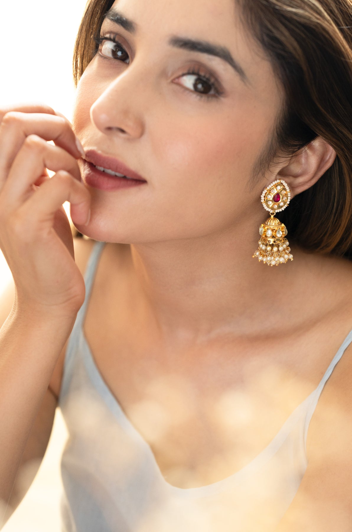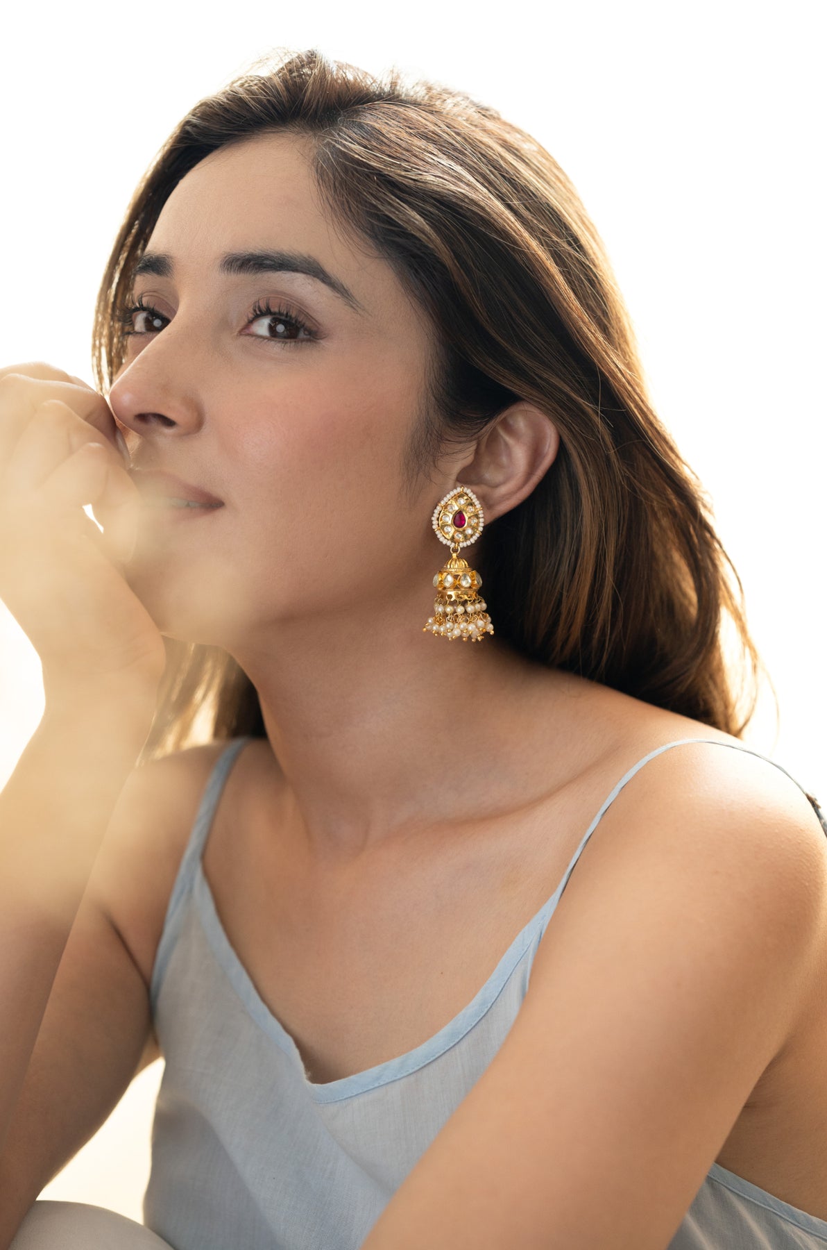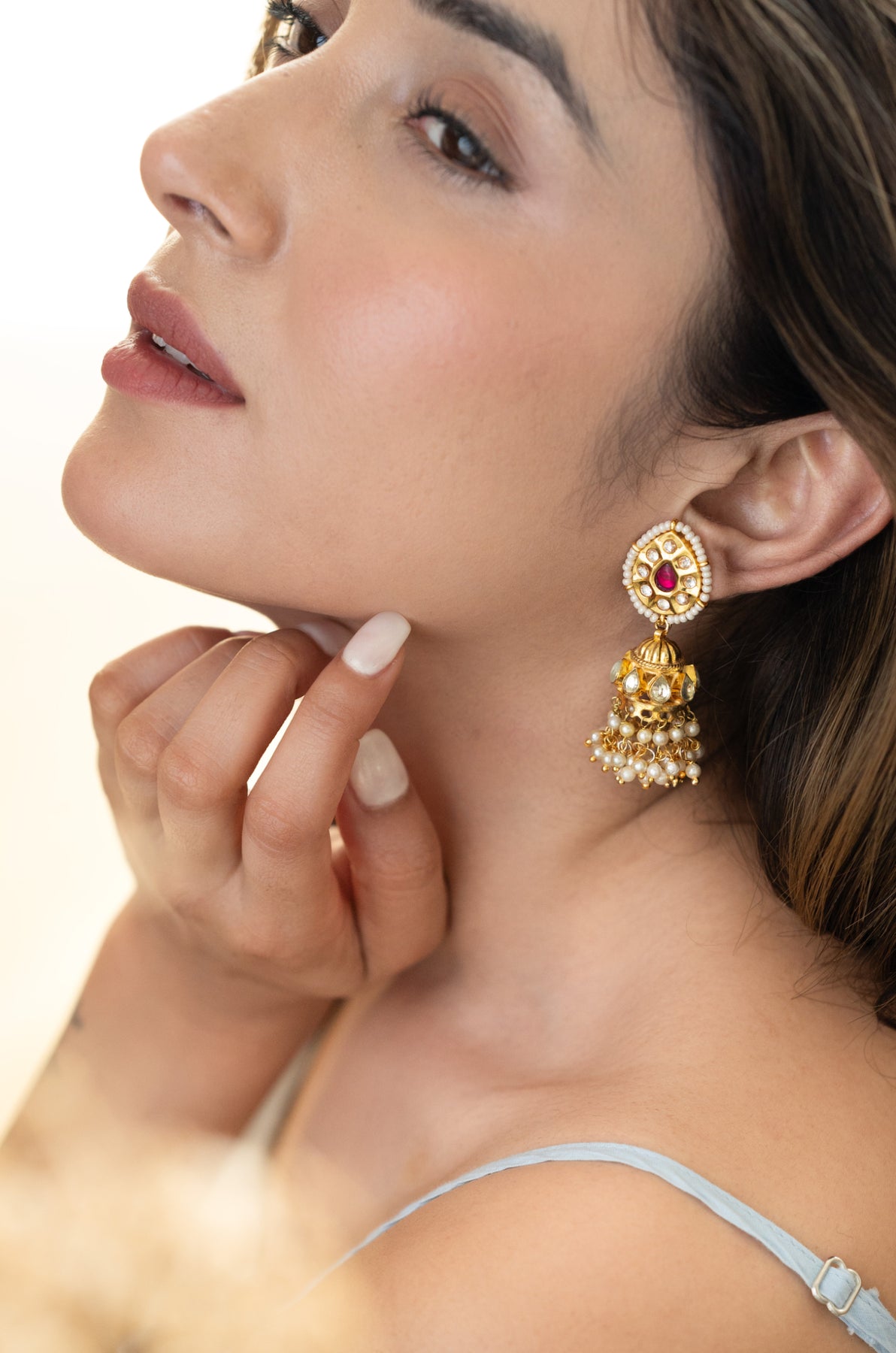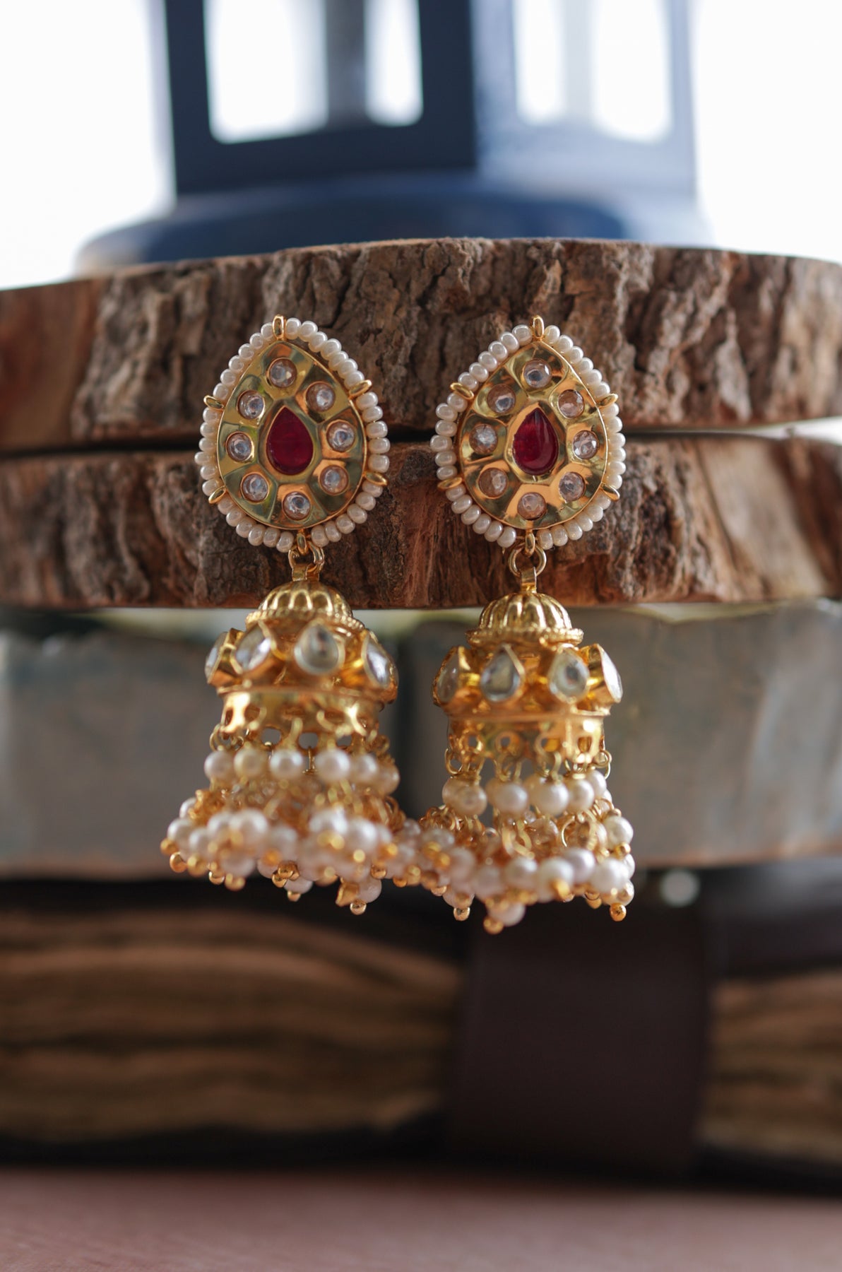 Upgrade your style with our Bruke earrings. Featuring a unique design with jhumka and delicate pearls, these earrings add a touch of elegance and sophistication. Adorned with pink shell pearls, they offer a minimalist yet eye-catching pop of color. Elevate your look with these exclusive earrings.