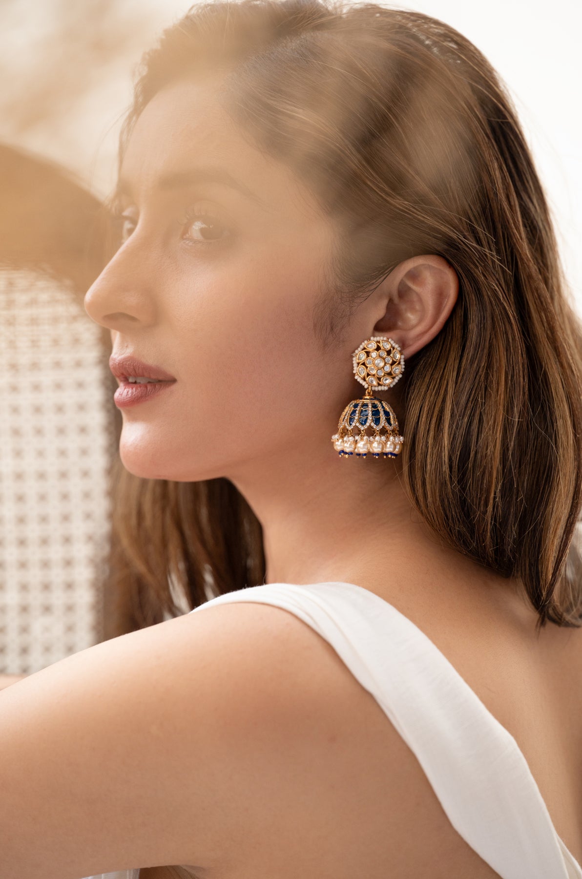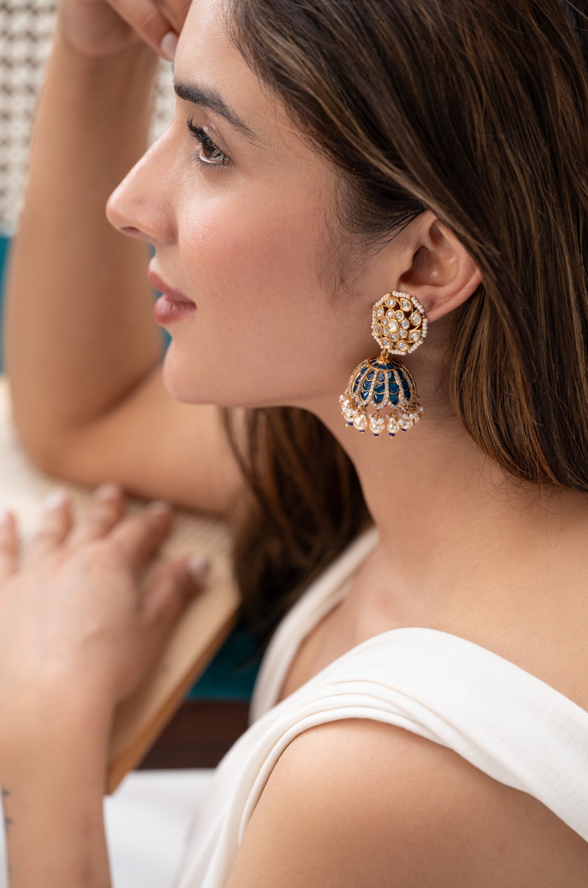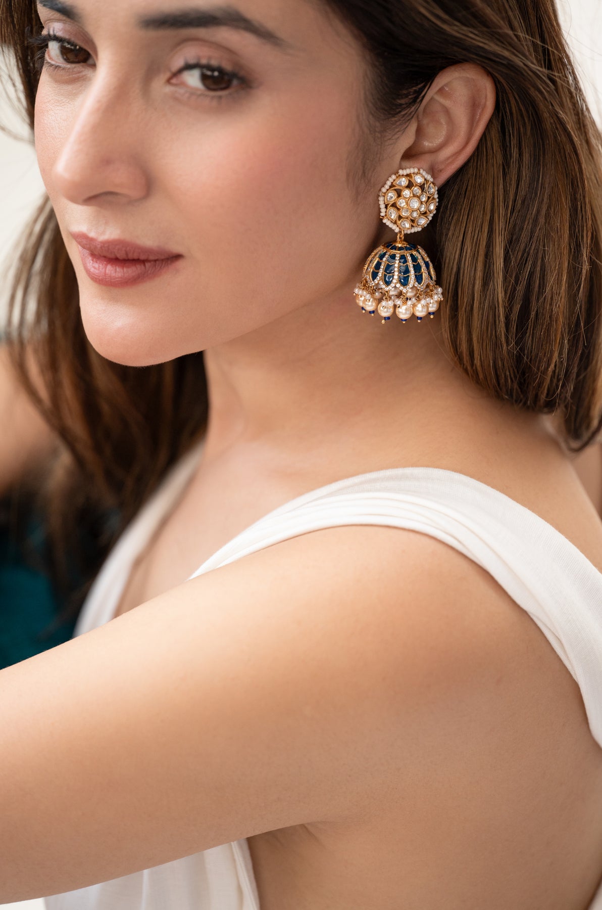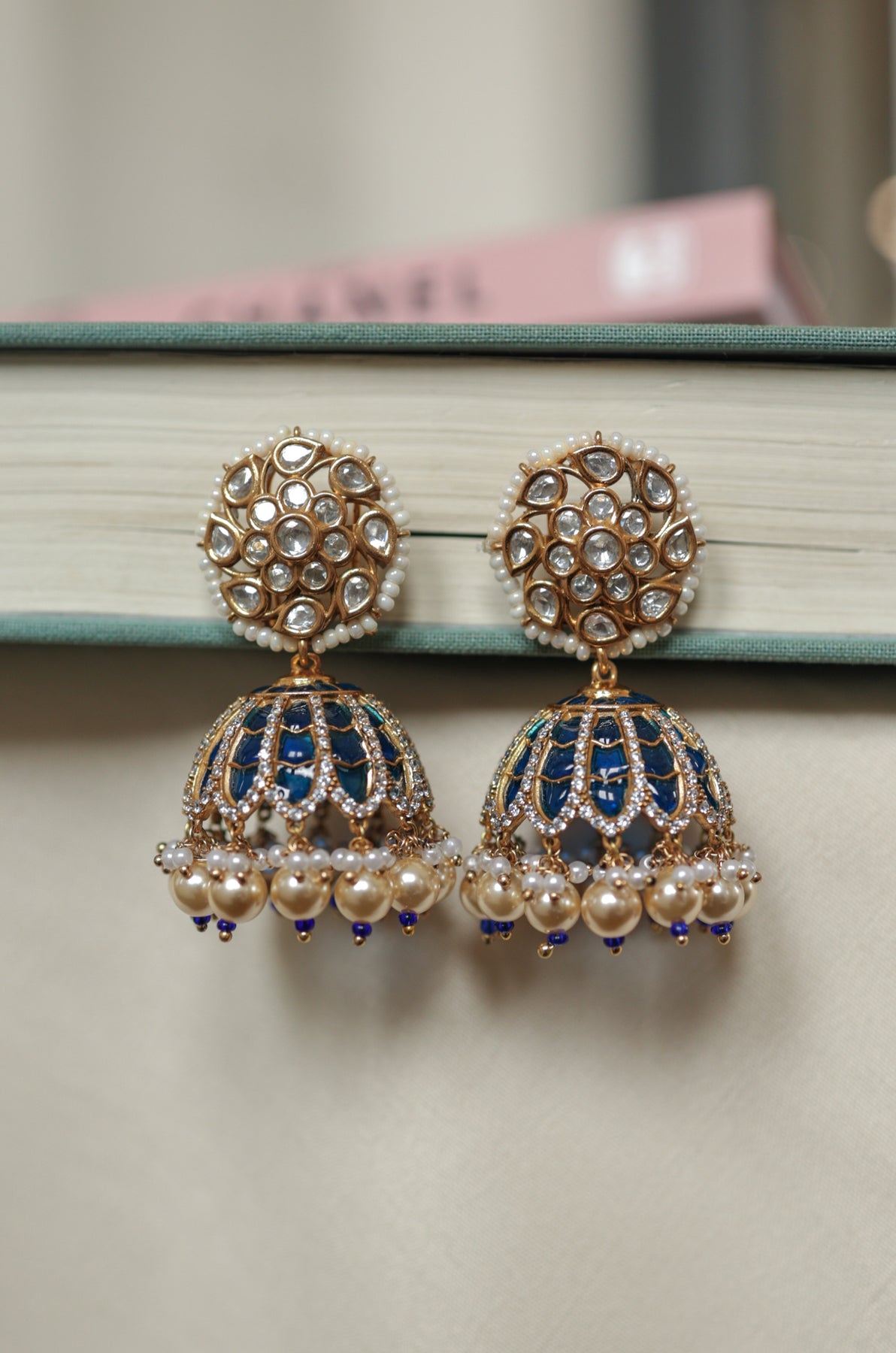 Oshin Polki Blue Jhumka Earrings