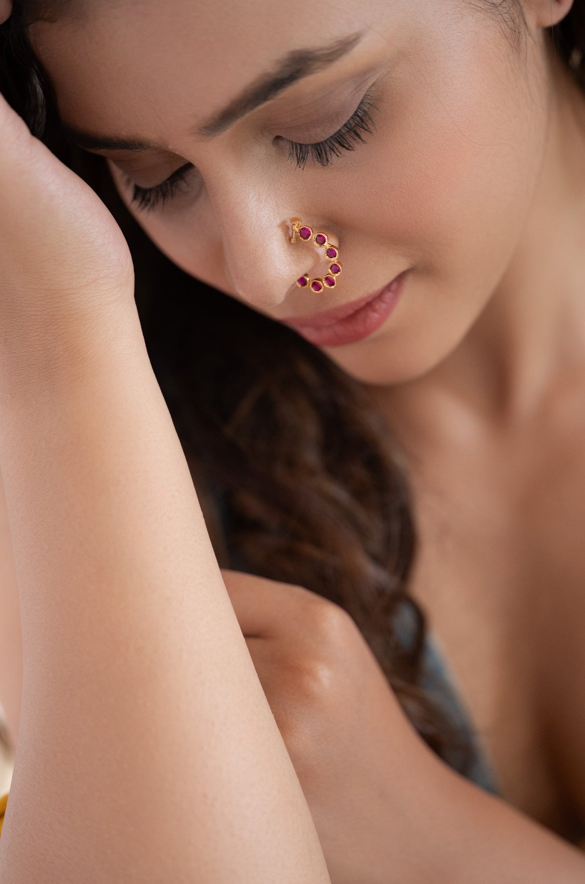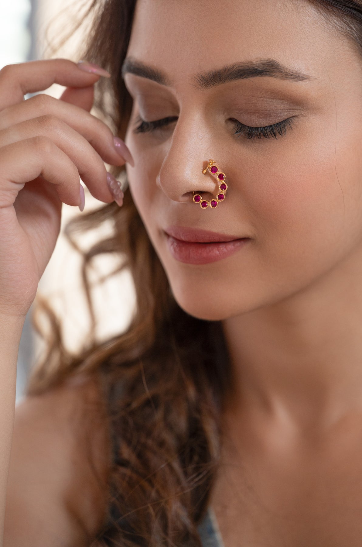 Bailey adds a touch of luxury to any traditional outfit for the upcoming festivities, effortlessly. The delicate and simplistic polki nosepin is adorned with sophistication and refinement, providing a lavish experience.