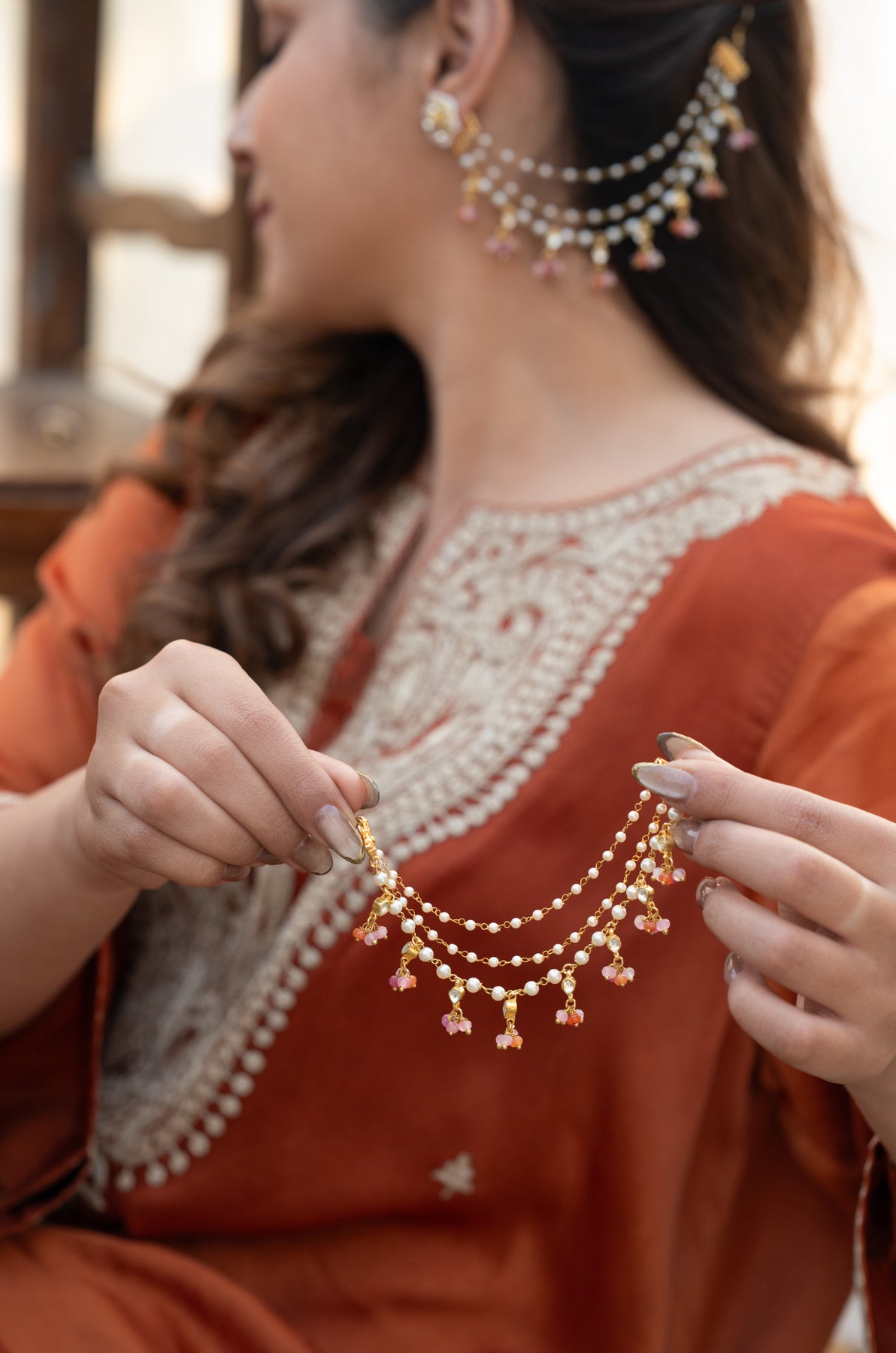 Ridhi Kundan & Pearls Kaan Chain