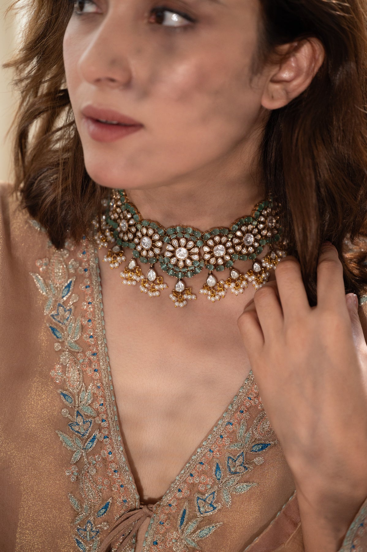 Nimra Mint Polki Necklace Set