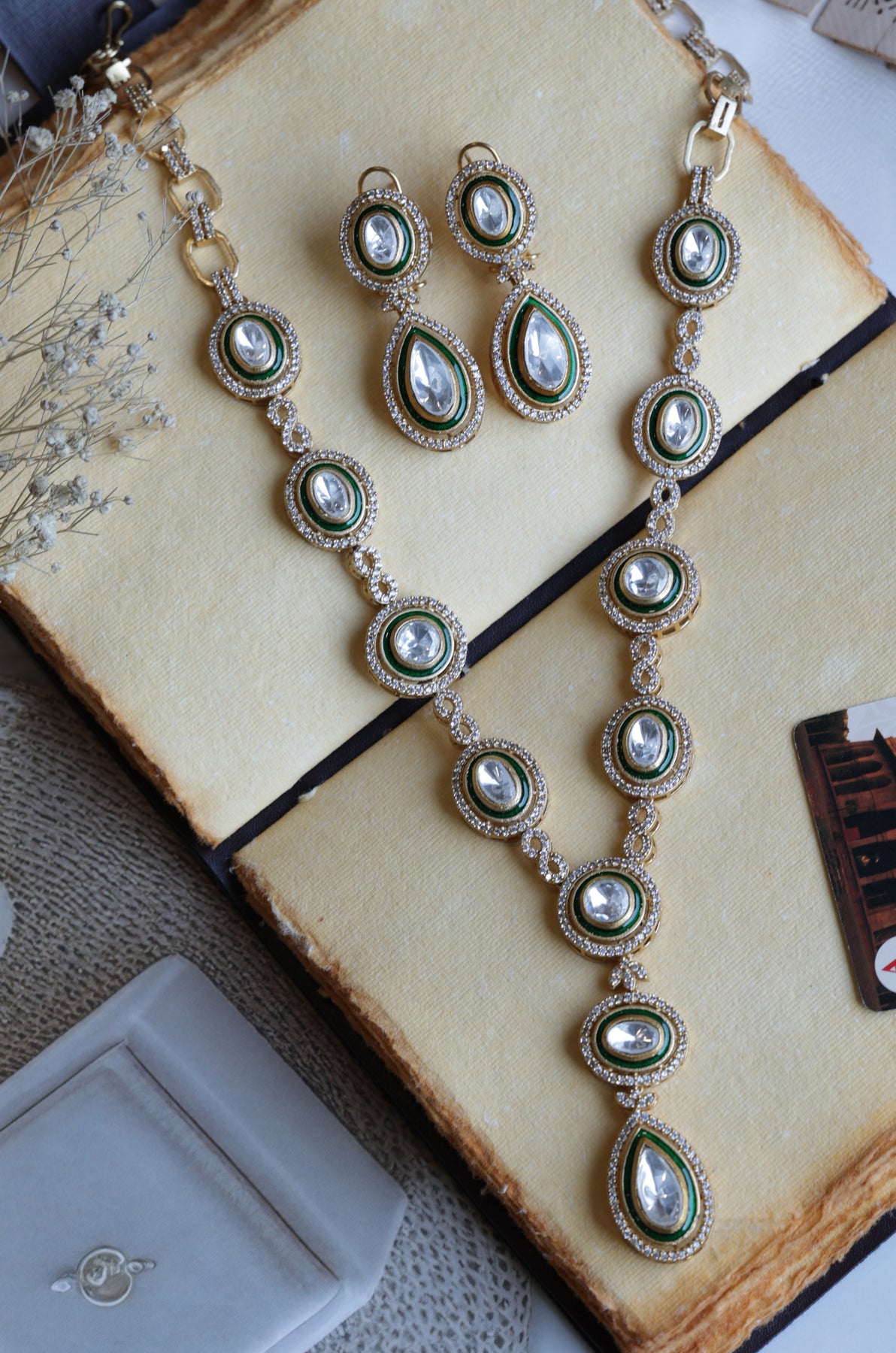 Tiya Green Polki Necklace Set