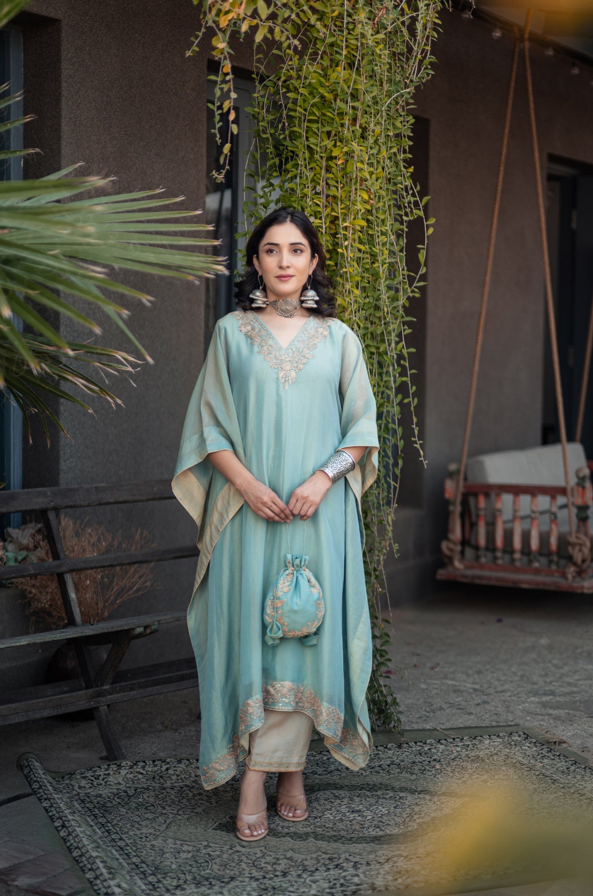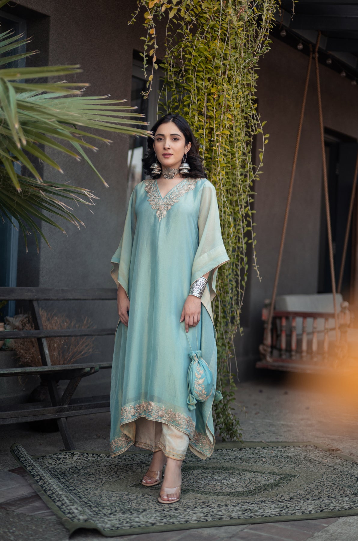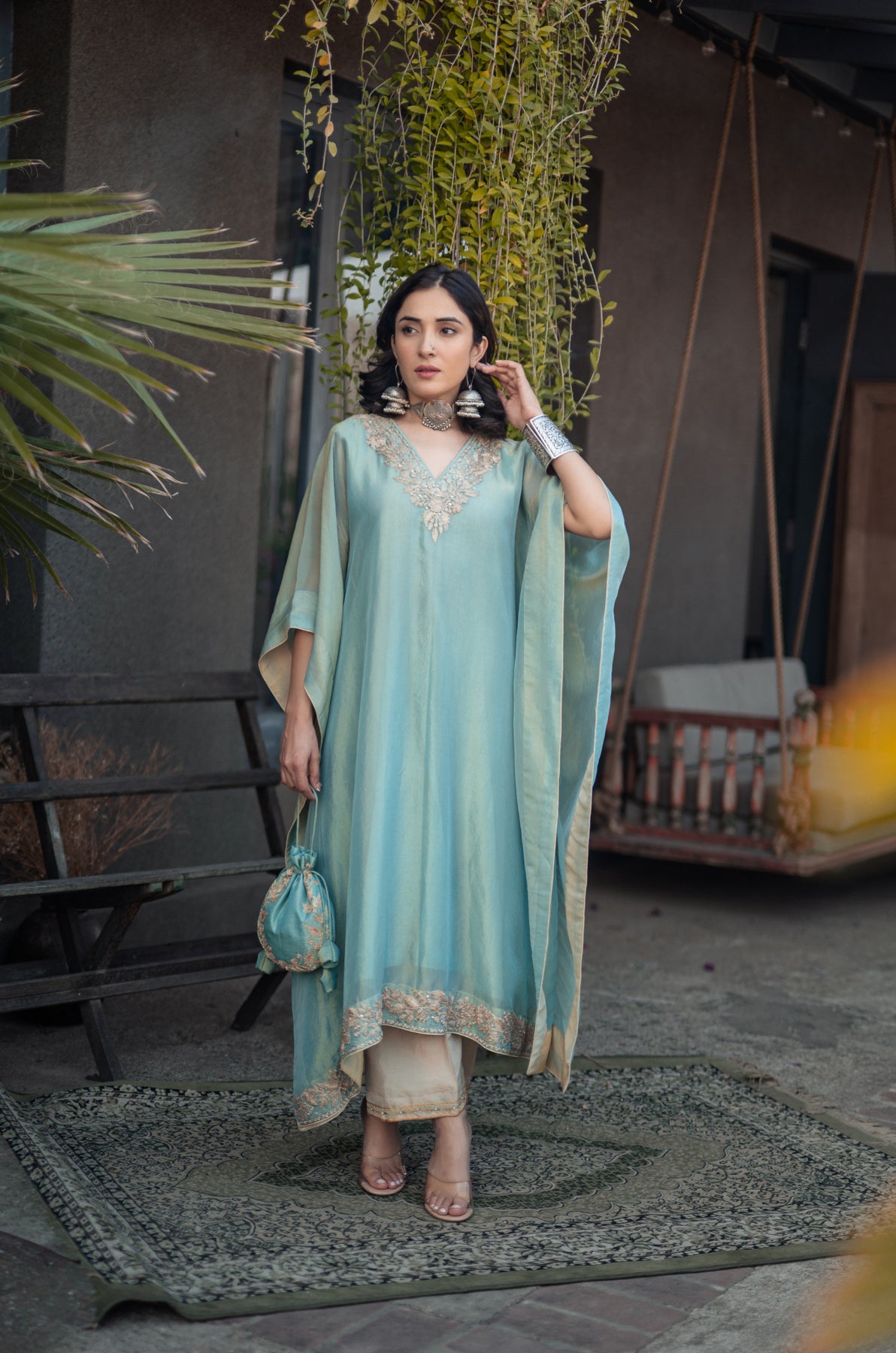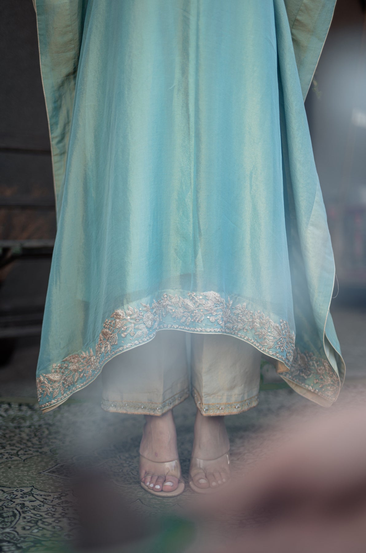 Nigeen Kashmiri Tissue Kaftan - Phiroza Blue