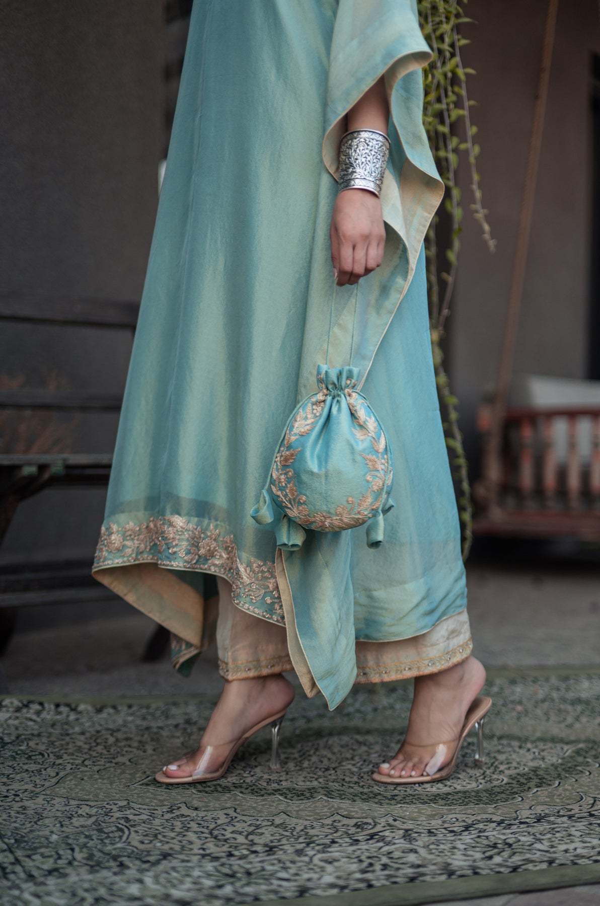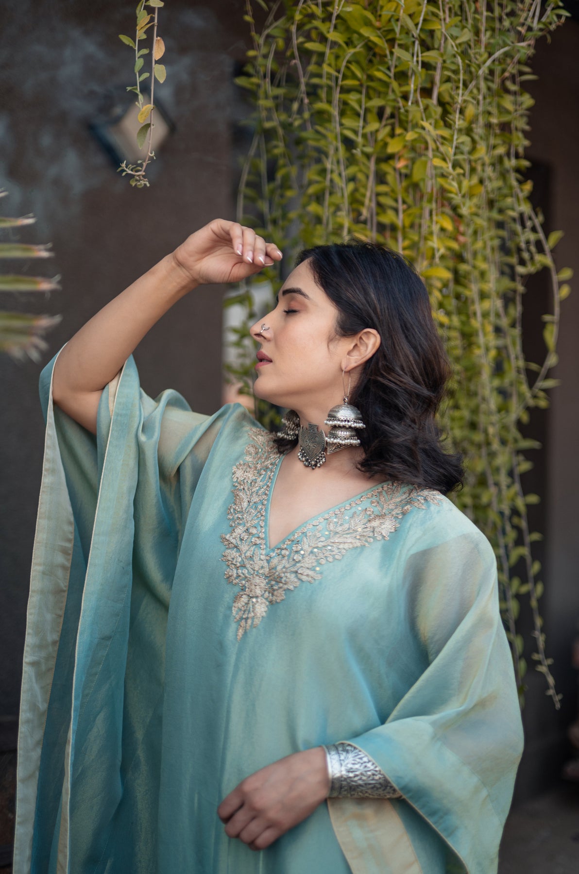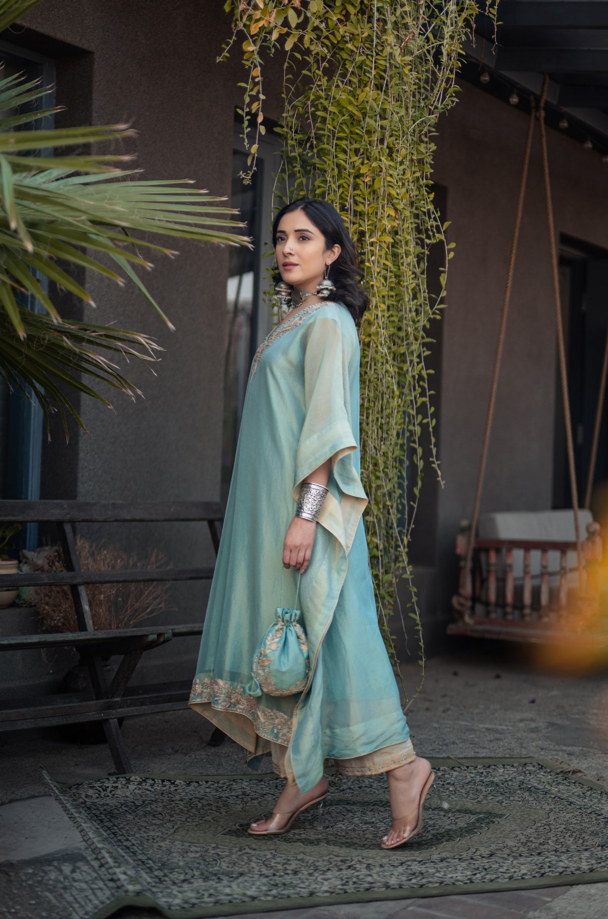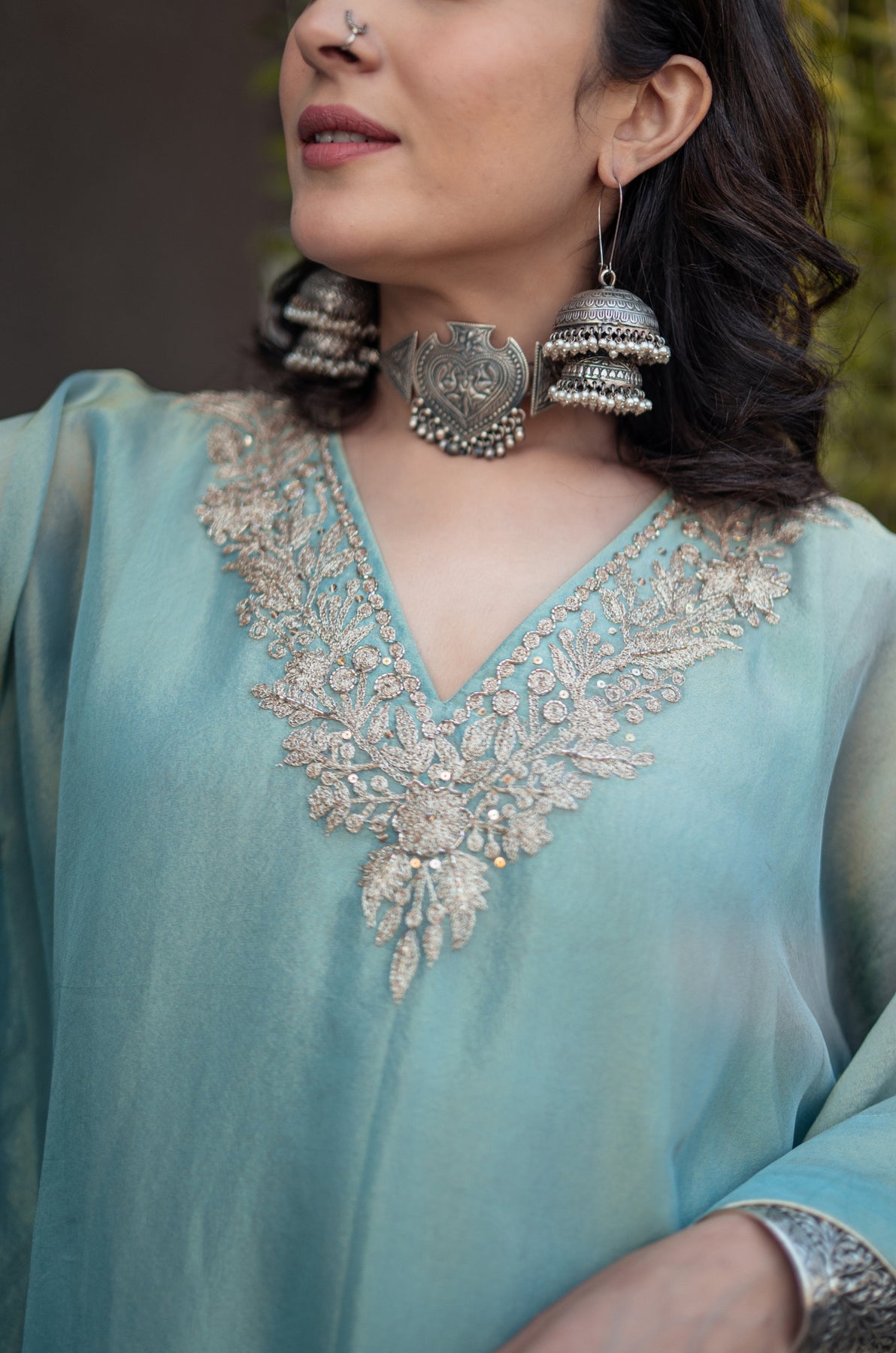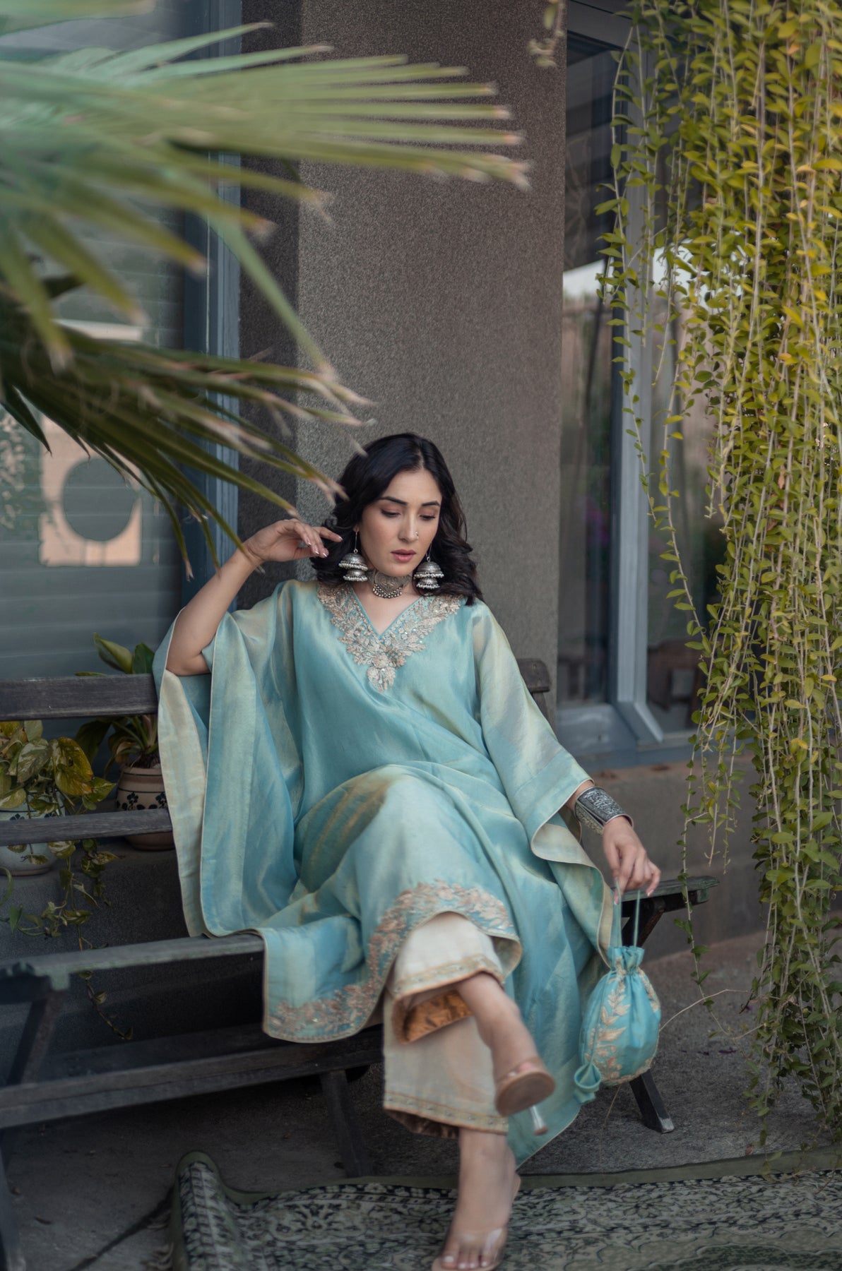 Nigeen Kashmiri Tissue Kaftan - Phiroza Blue