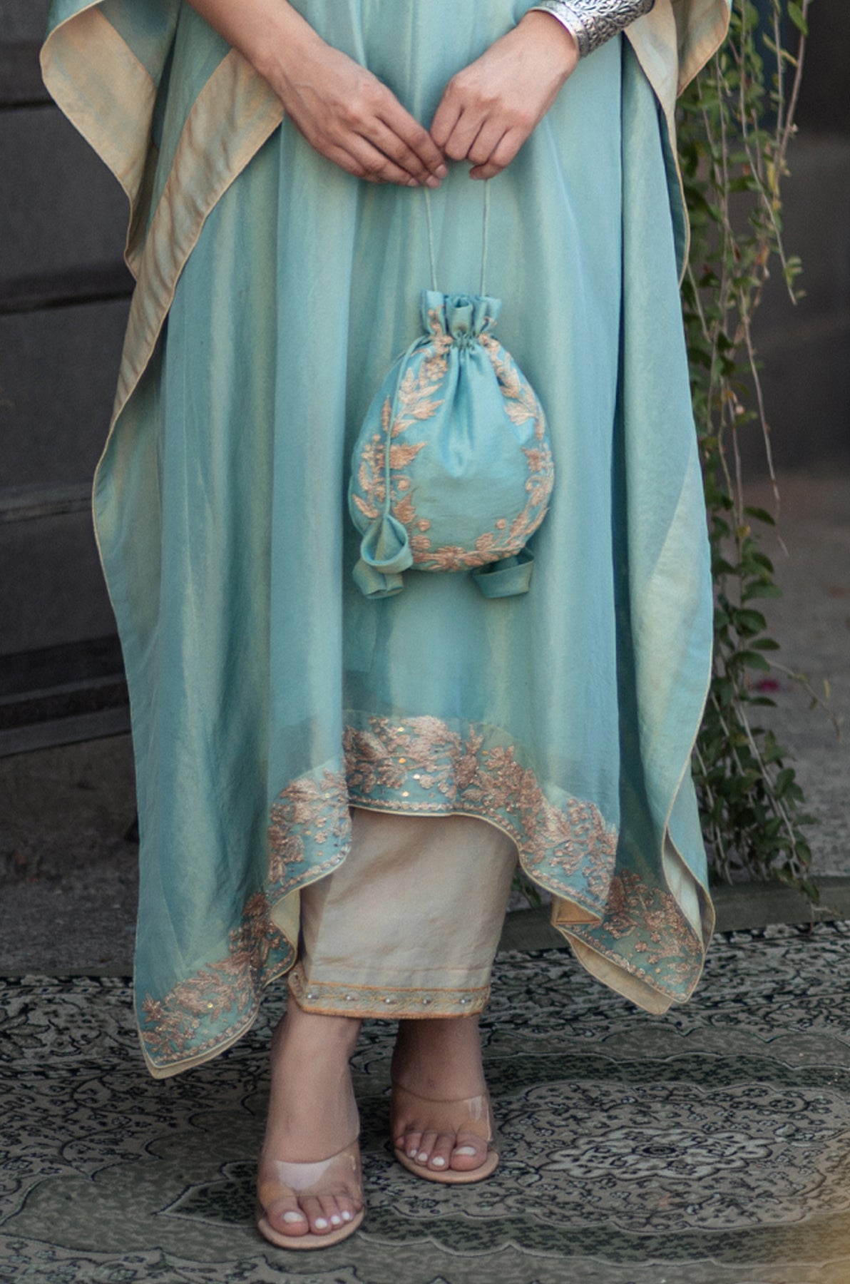 Gulnaar Phiroza Blue Kashmiri Tilla Potli