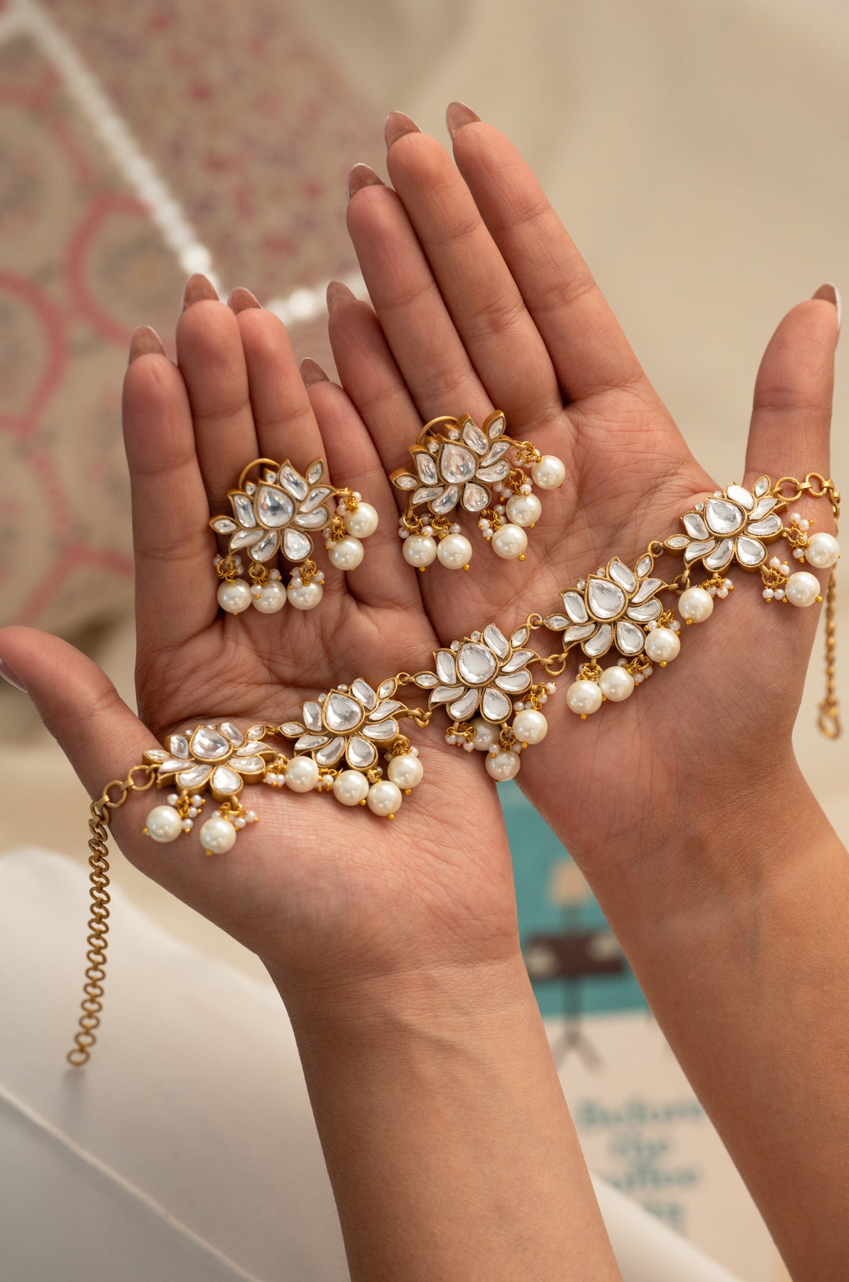Stunning Kamal Kundan choker that blends traditional lotus motifs with modern flair. This intricate kundan necklace set is perfect for weddings, festivals, and special occasions. Graceful, heritage-inspired, and guaranteed to turn heads.