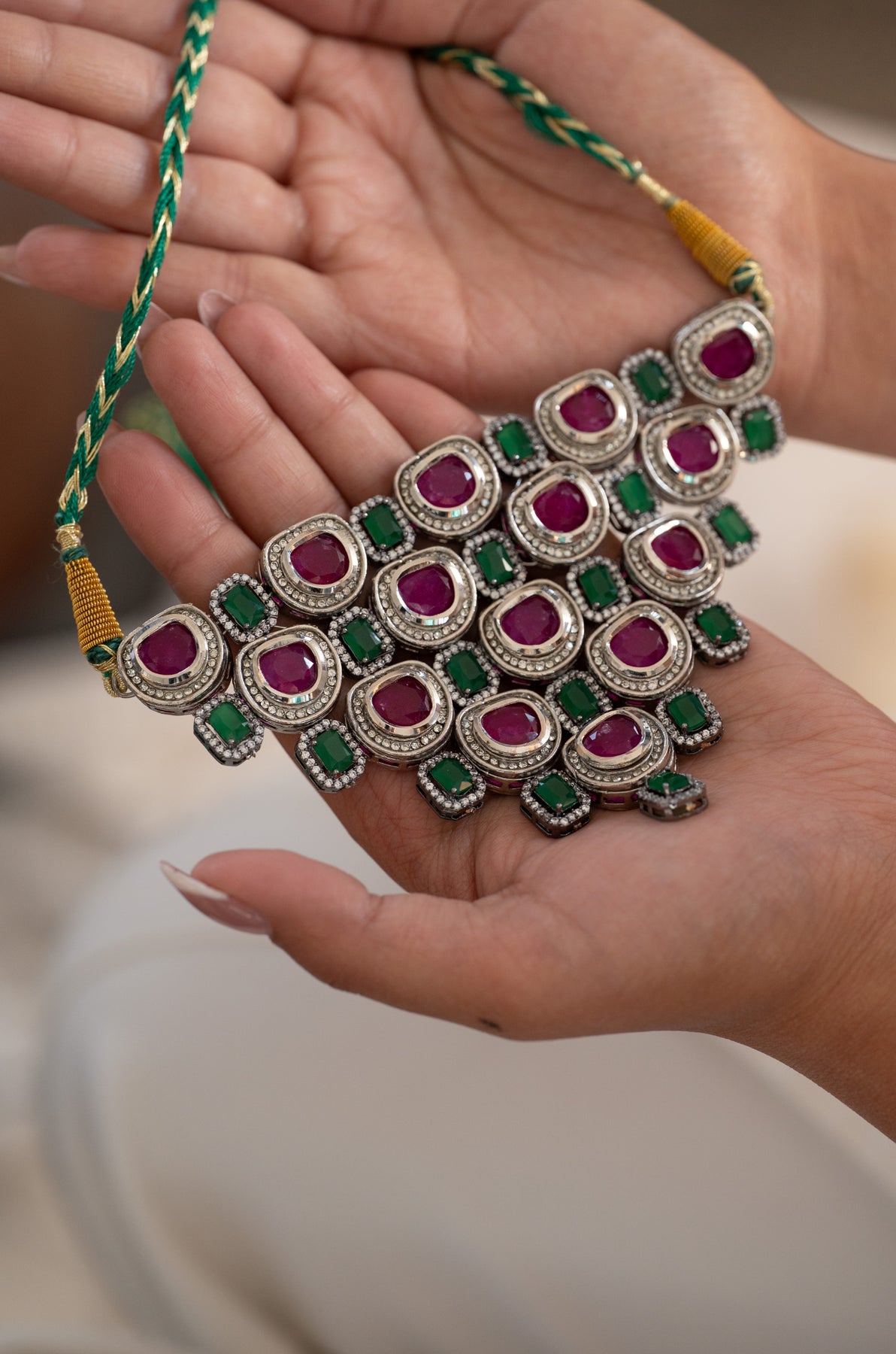 Shreva Pink And Green Necklace