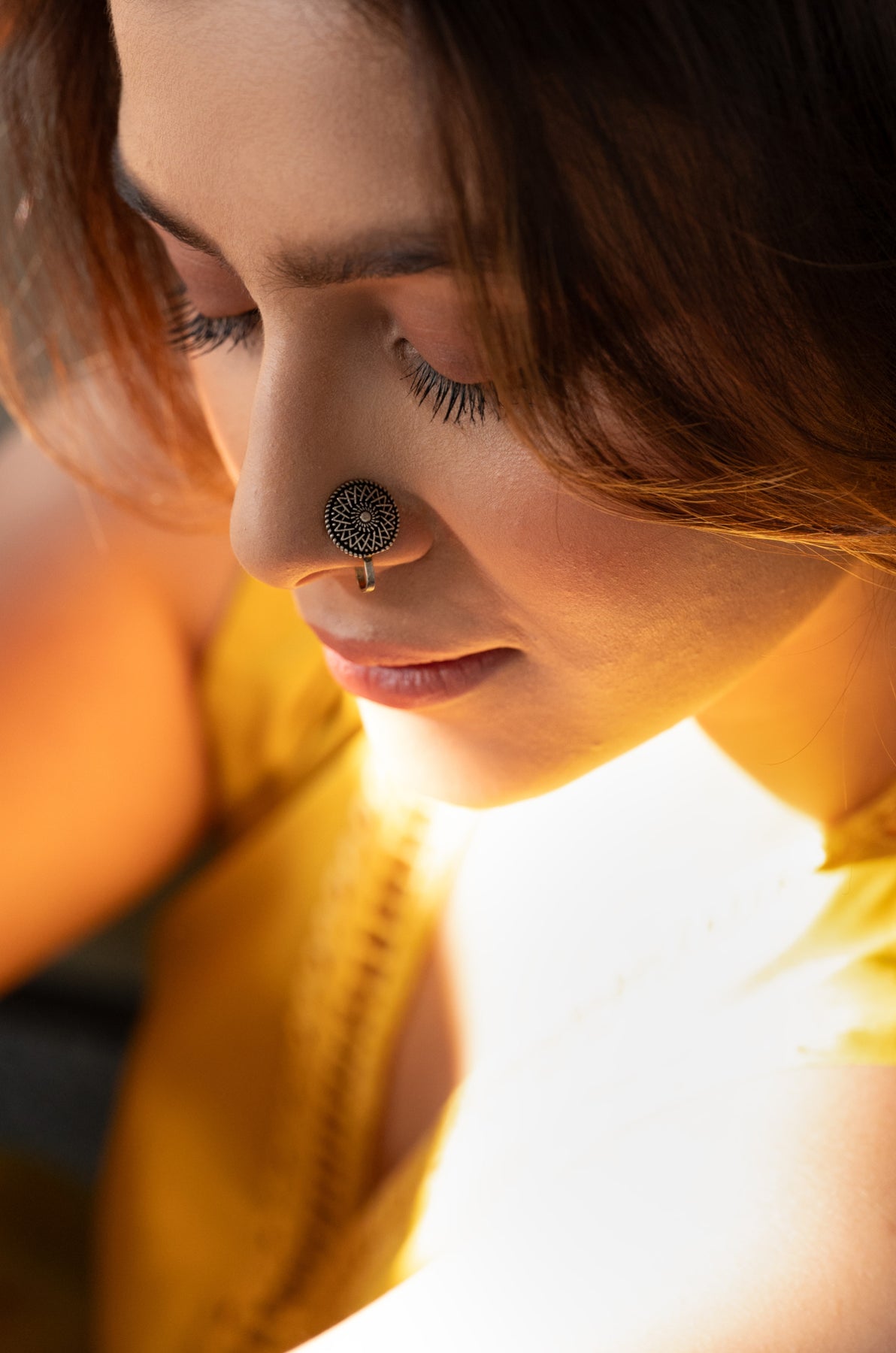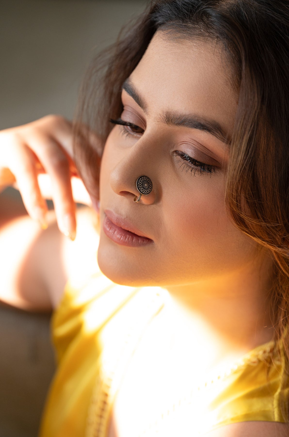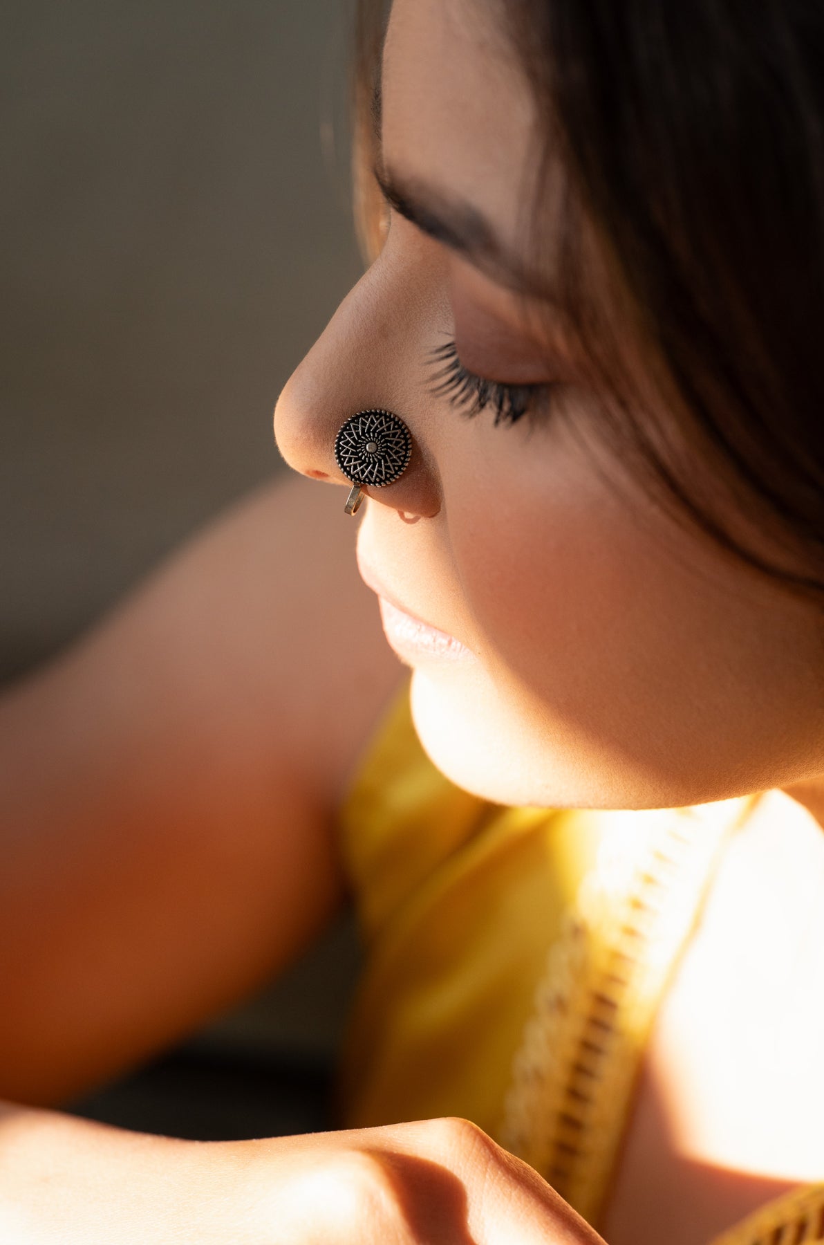 Embrace your wild side with the Jenny nosepin, a tribal-infused piece that radiates boho charm. This oxidized silver beauty is your ticket to adding an edgy, unconventional touch to any outfit. Perfect for those who dare to stand out and celebrate their unique, free-spirited nature with authentic flair.