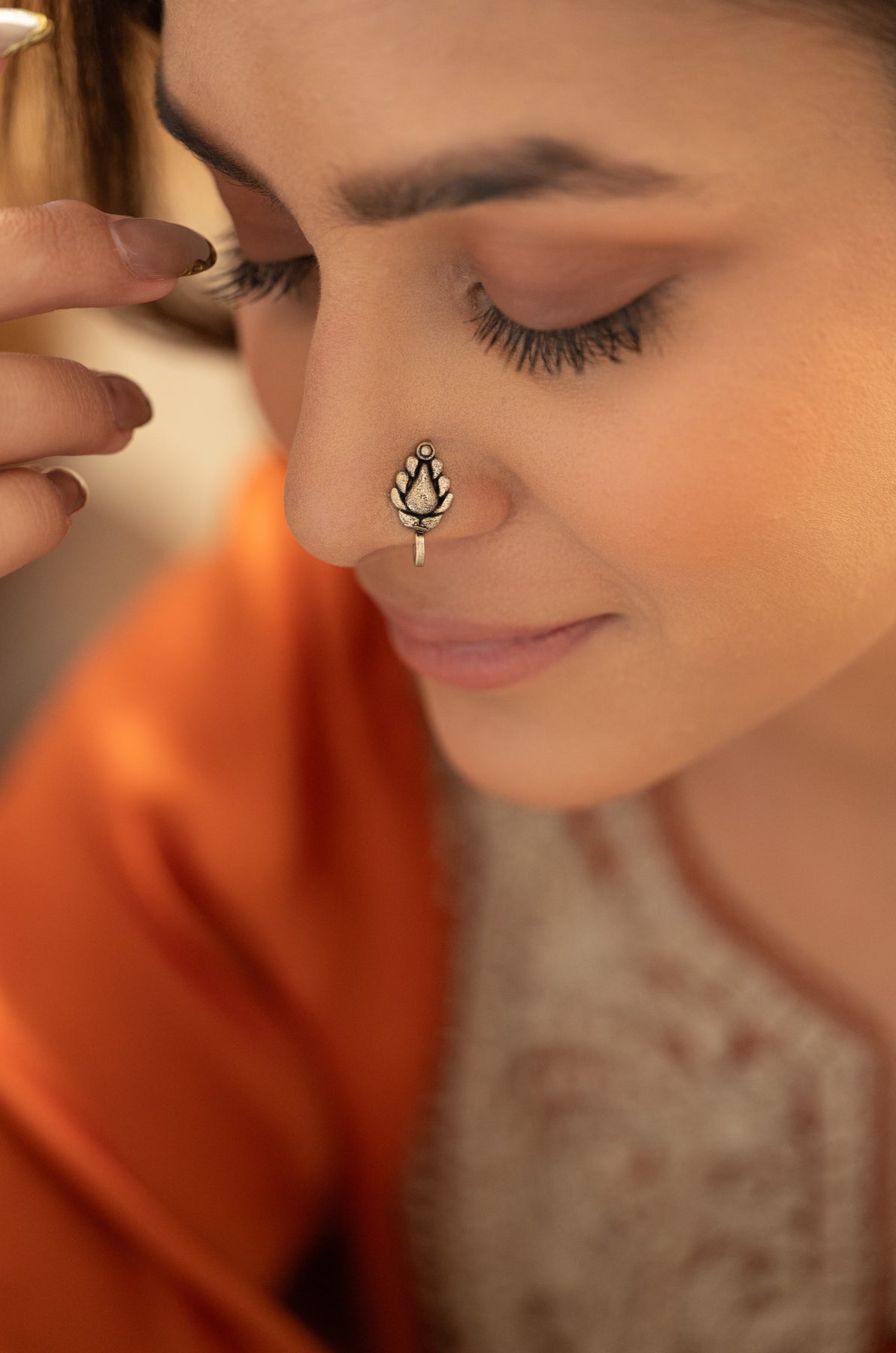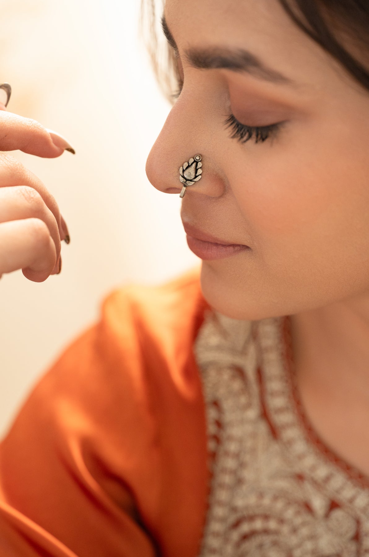 Channeling free-spirited energy, this Joe nosepin brings tribal-inspired flair to your everyday look. Crafted in oxidized silver, it's the perfect accessory to inject some bohemian edge and authentic character into your personal style.