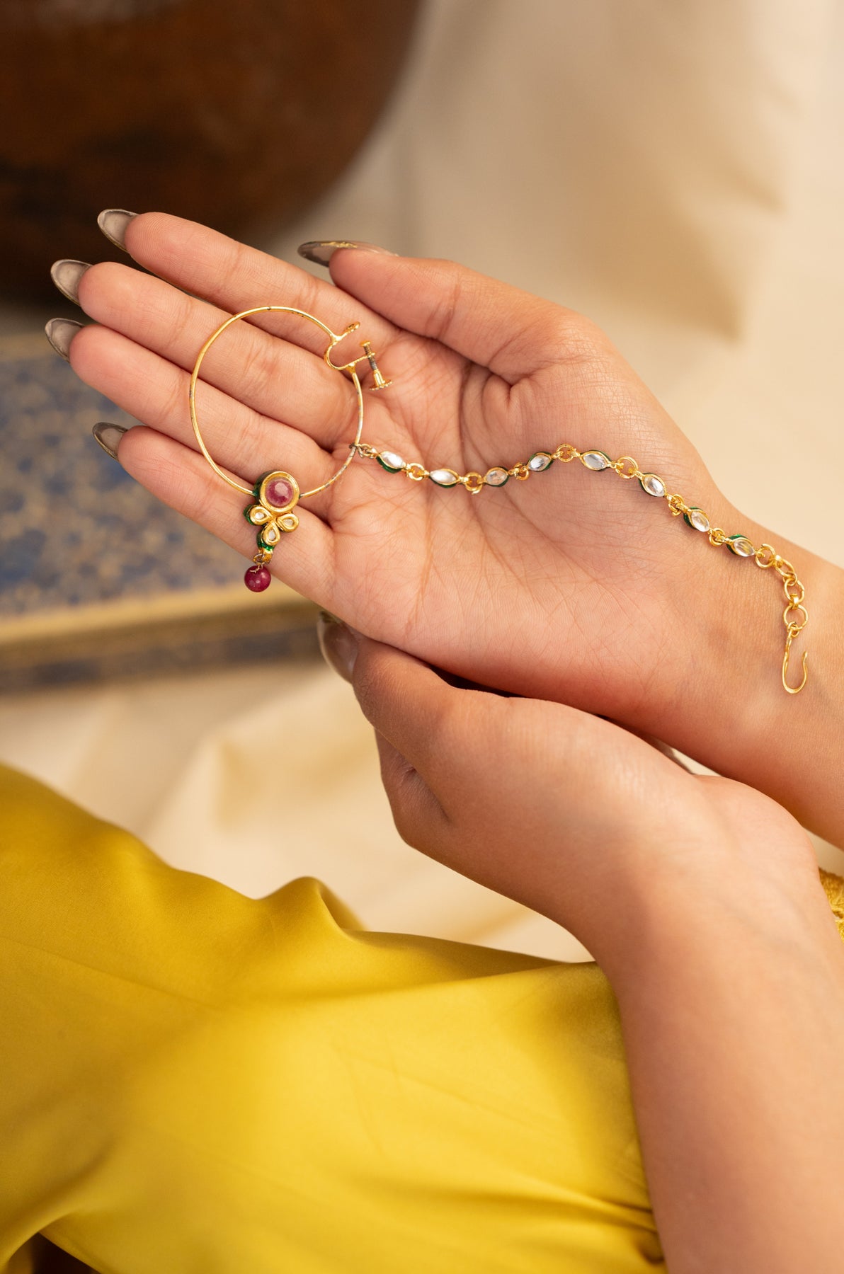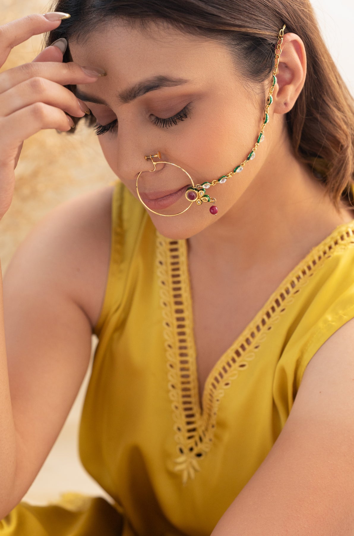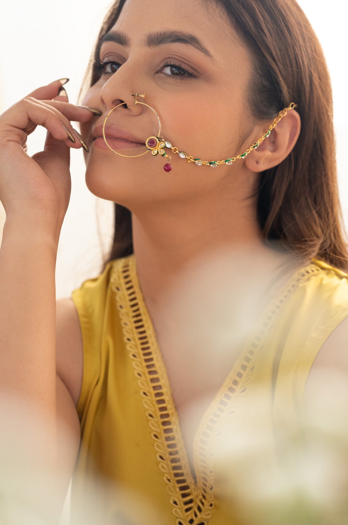 Elevate your everyday elegance with the Sachi Kundan Nosepin, where traditional artistry meets modern flair. This stunning piece features intricate kundan detailing that catches the light beautifully, making it your go-to accessory for festivals, celebrations, or simply when you want to feel like royalty. Because who says you can't be both graceful and glamorous?