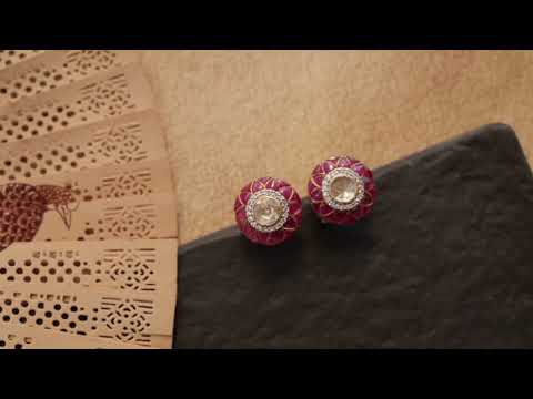 Indulge in the intricately handcrafted Aiza pink fine silver polki earrings, featuring a floral design adorned with deep pink polki stones. The addition of pearls and a meticulously detailed layout exude a timeless elegance, while the use of premium silver elevates these earrings to statement accessories, representing your impeccable taste and effortless style.