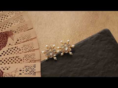 Meticulously crafted with care, these earrings showcase polki stones reminiscent of tranquil waters. Embellished with pearls and adorned with a meticulously detailed design, they exude a timeless, sophisticated elegance. Made from premium silver, they are more than just accessories; they are a declaration of refined taste and effortless style.