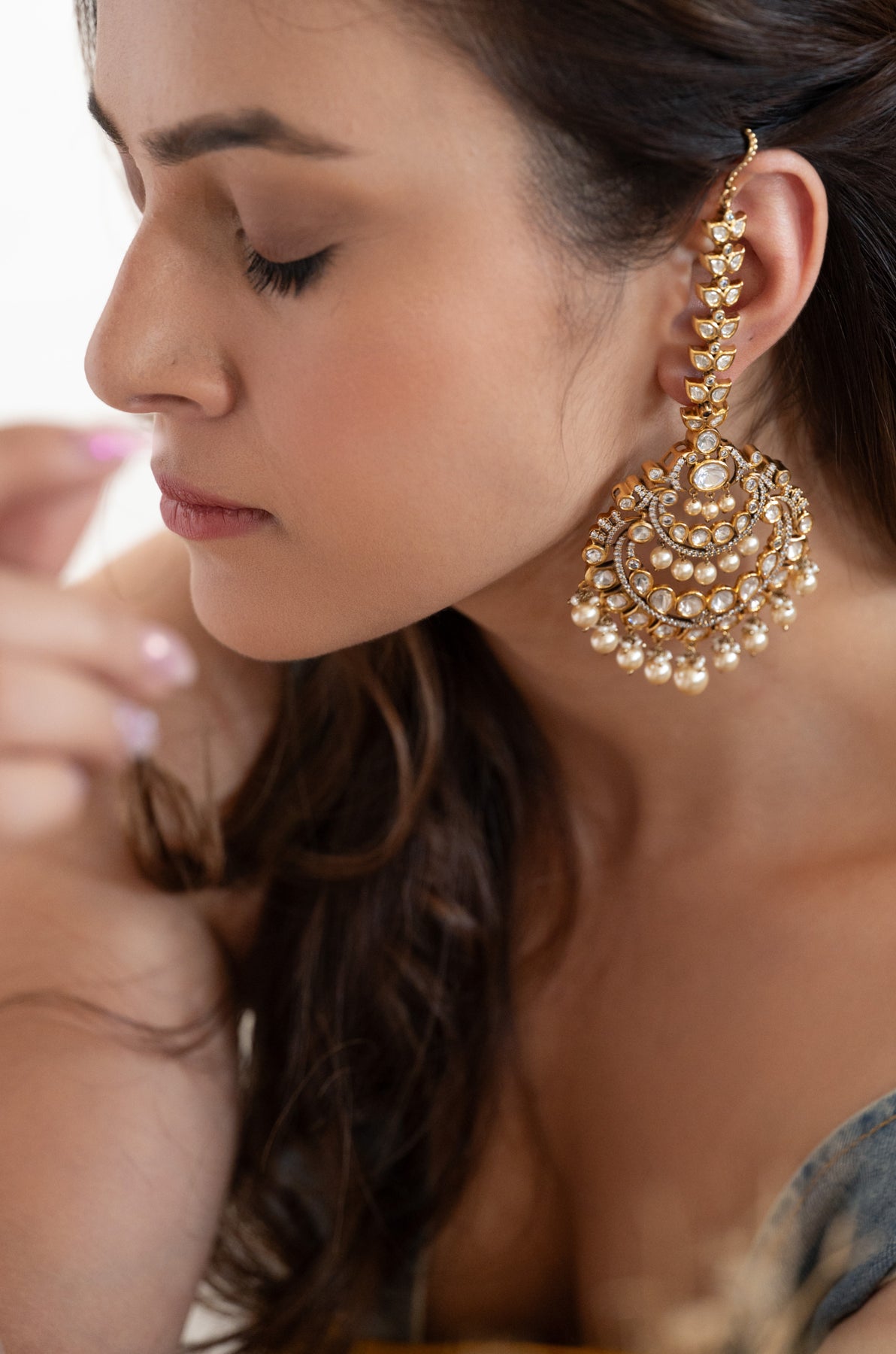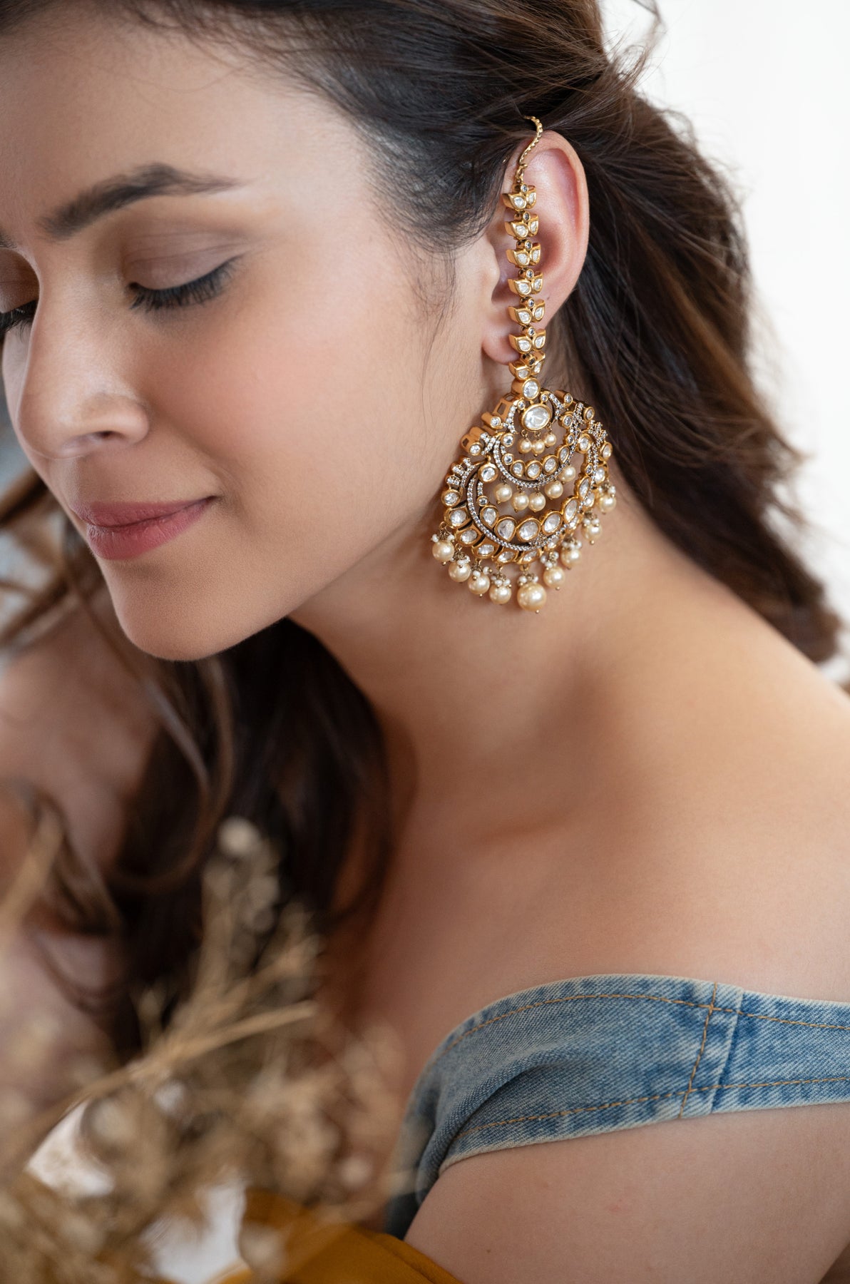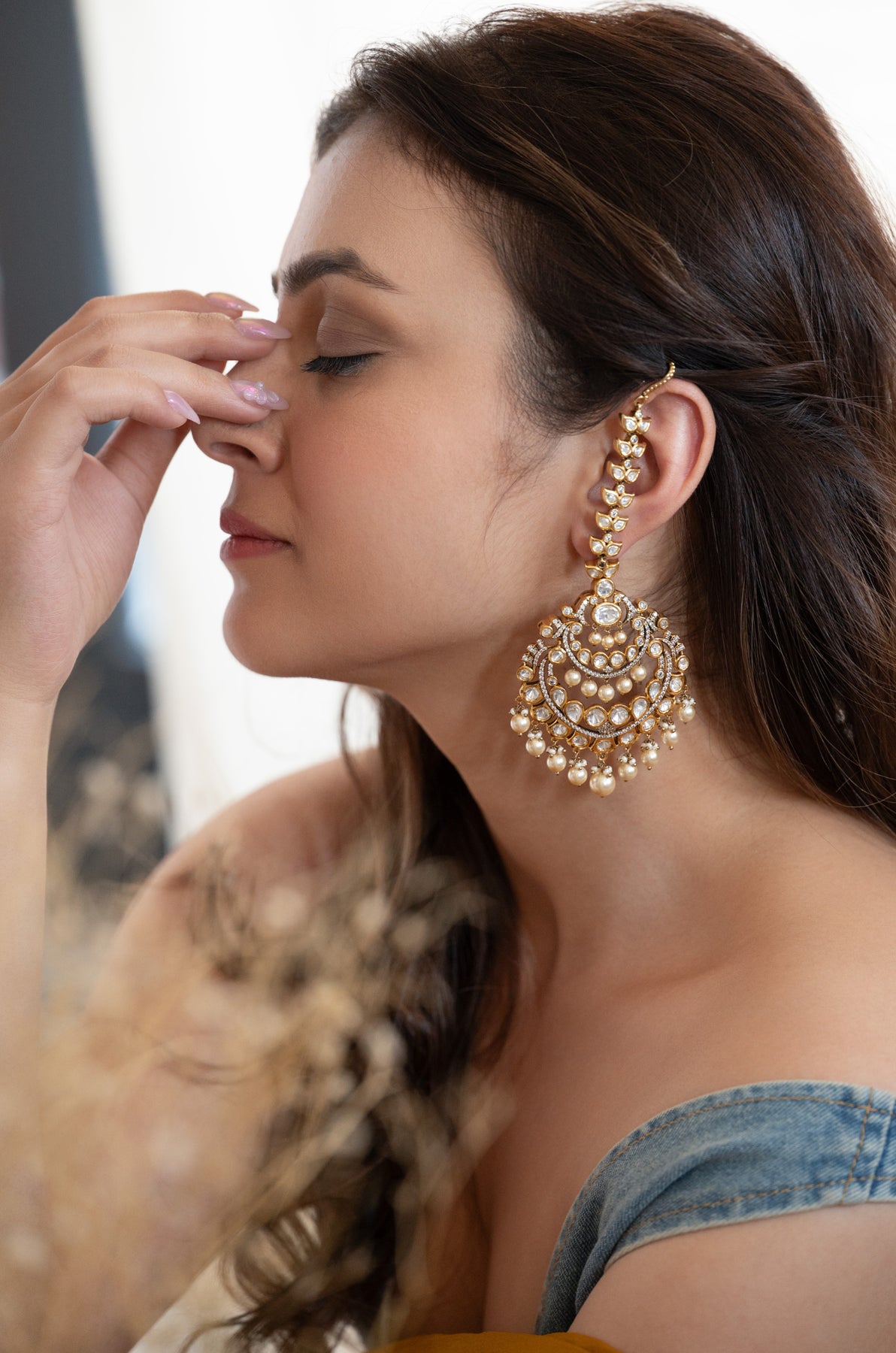 Add a touch of royal charm with the Anaya earrings, featuring stunning polki stones and lustrous pearls. This statement piece effortlessly elevates your look, perfect for turning heads at any celebration. Playful yet elegant, it’s your go-to accessory for making lasting impressions.