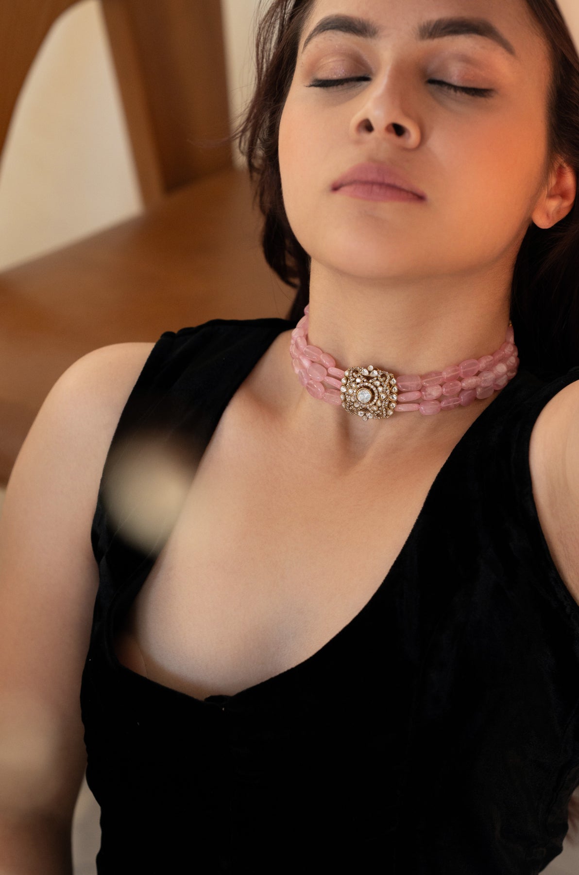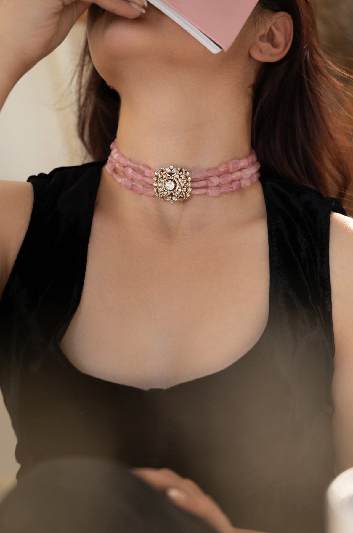 Kizzi Pink Polki Choker Necklace