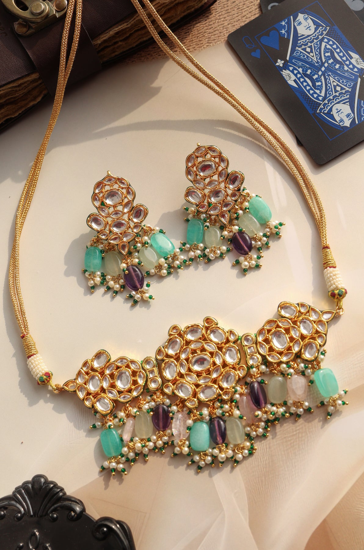 Lyca Multicolored Kundan Necklace Set